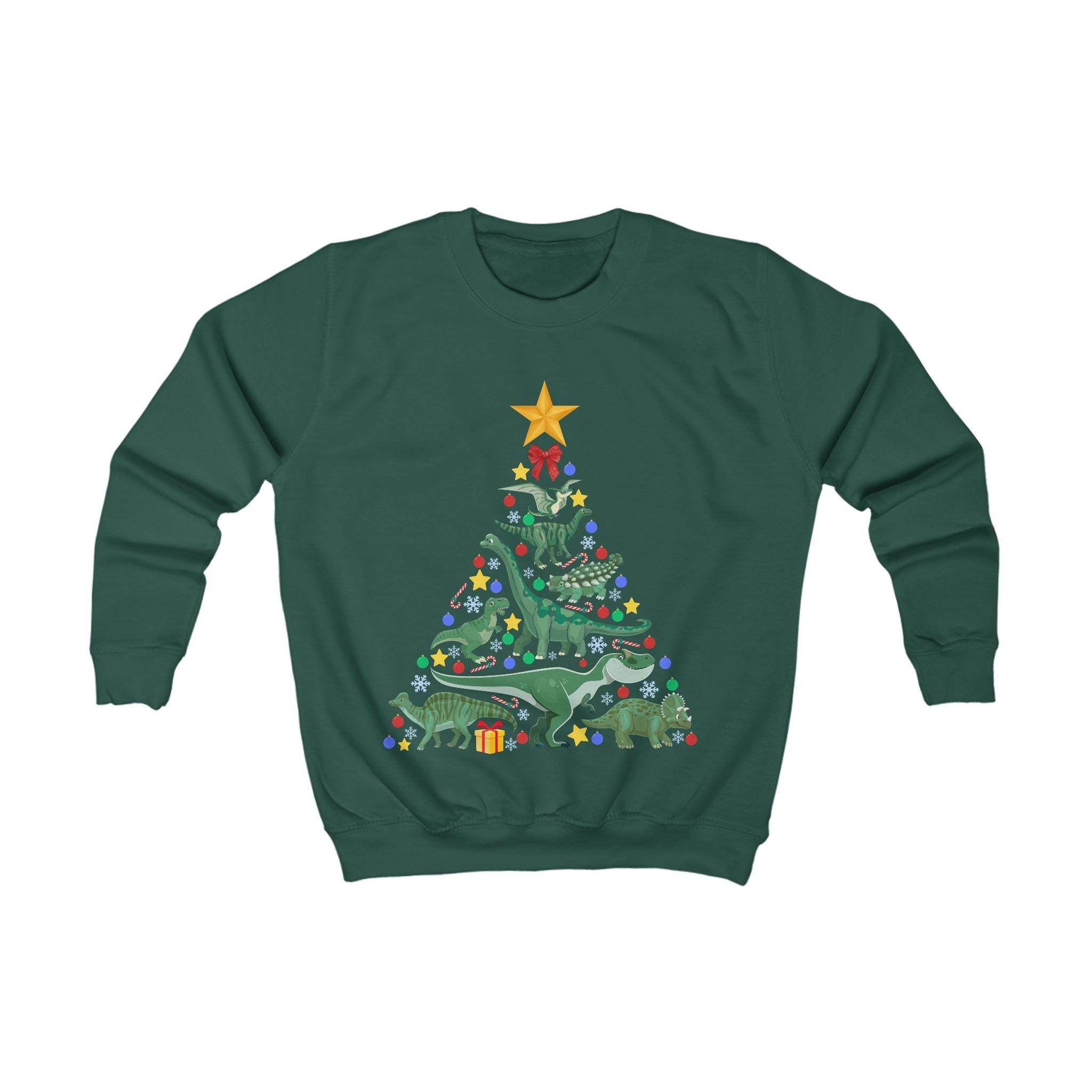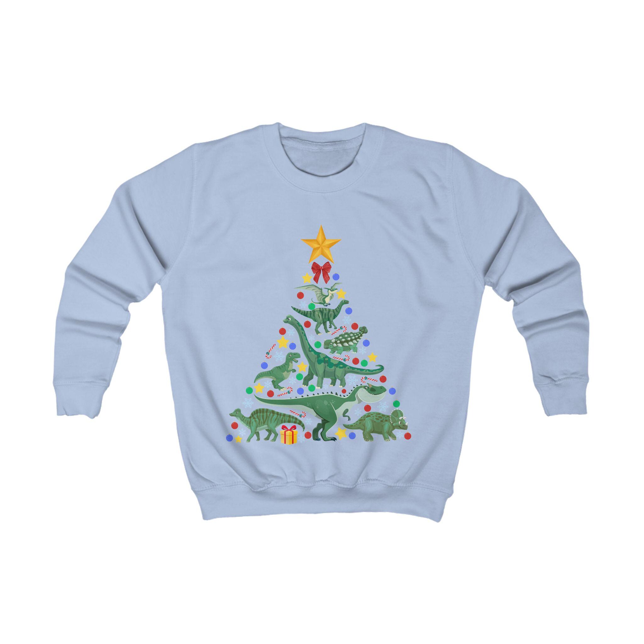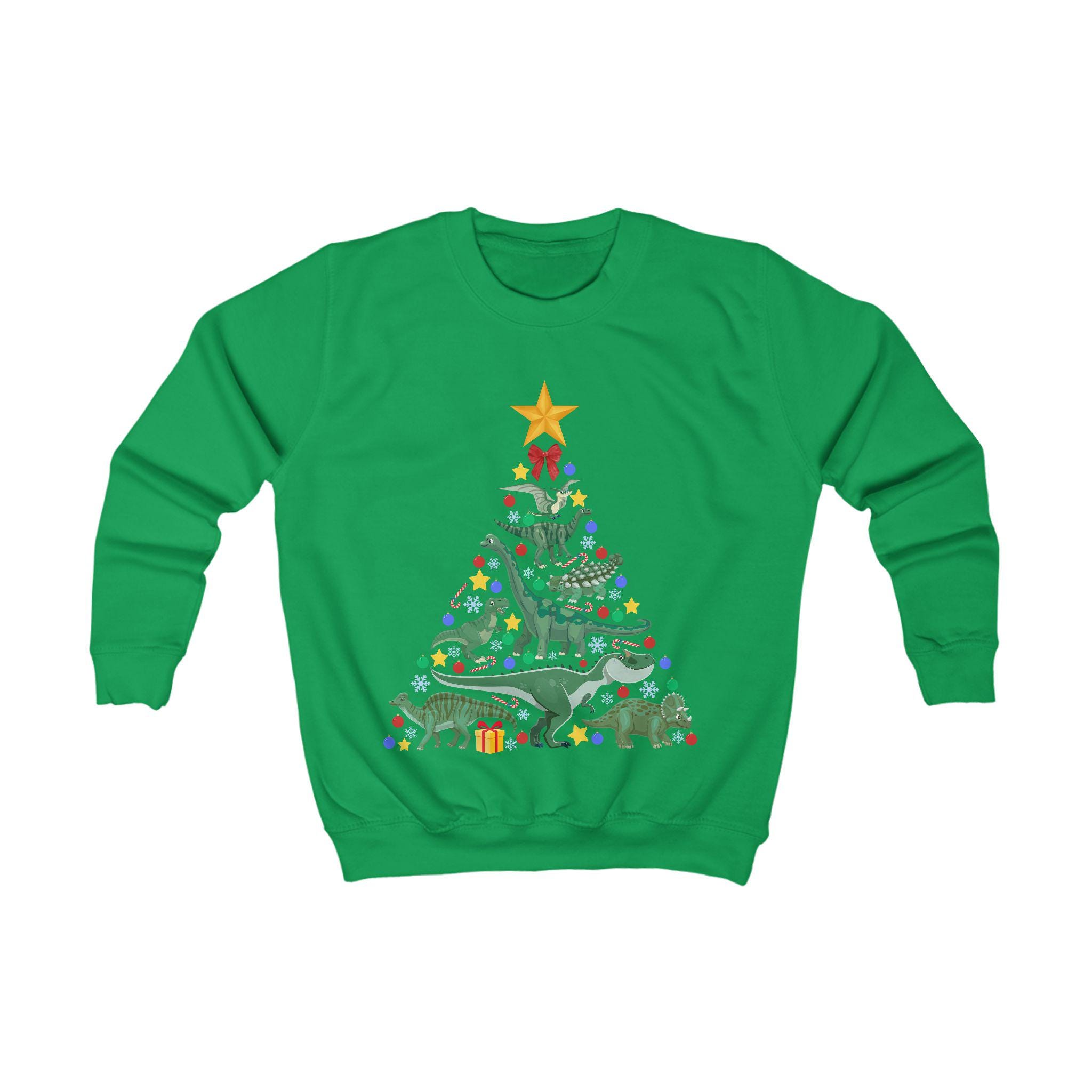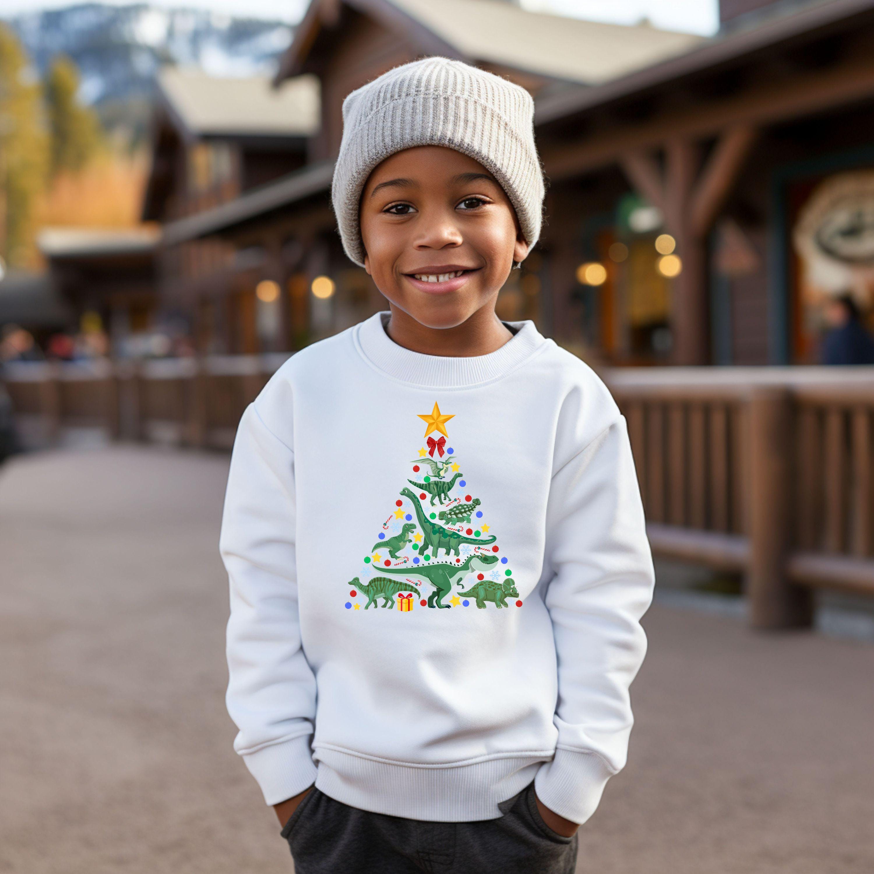 Our adorable Dinosaur Christmas Sweatshirt for kids is the perfect outfit for little dino fans who can’t wait for the holidays. The fun, festive print features a group of cheerful dinosaurs forming a Christmas tree – a real eye-catcher for family photos, school events, or winter festivities!