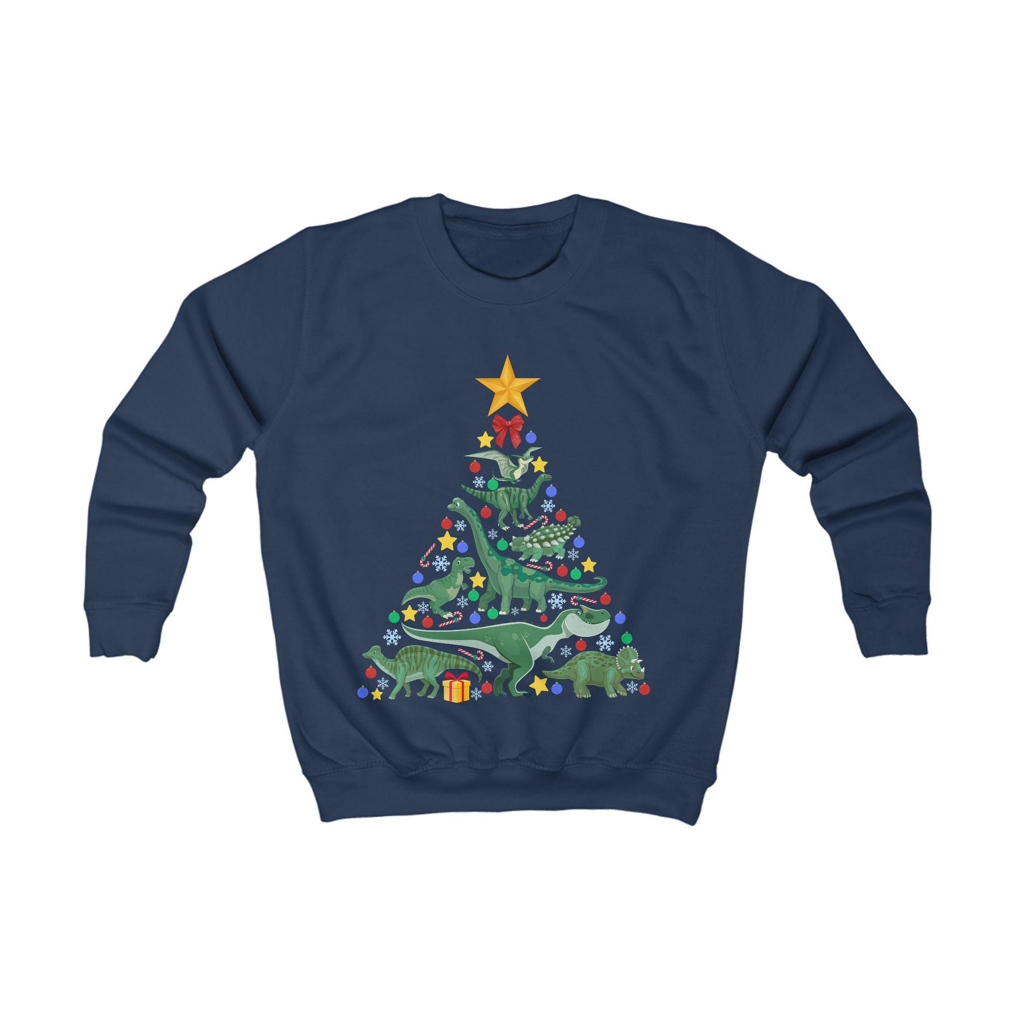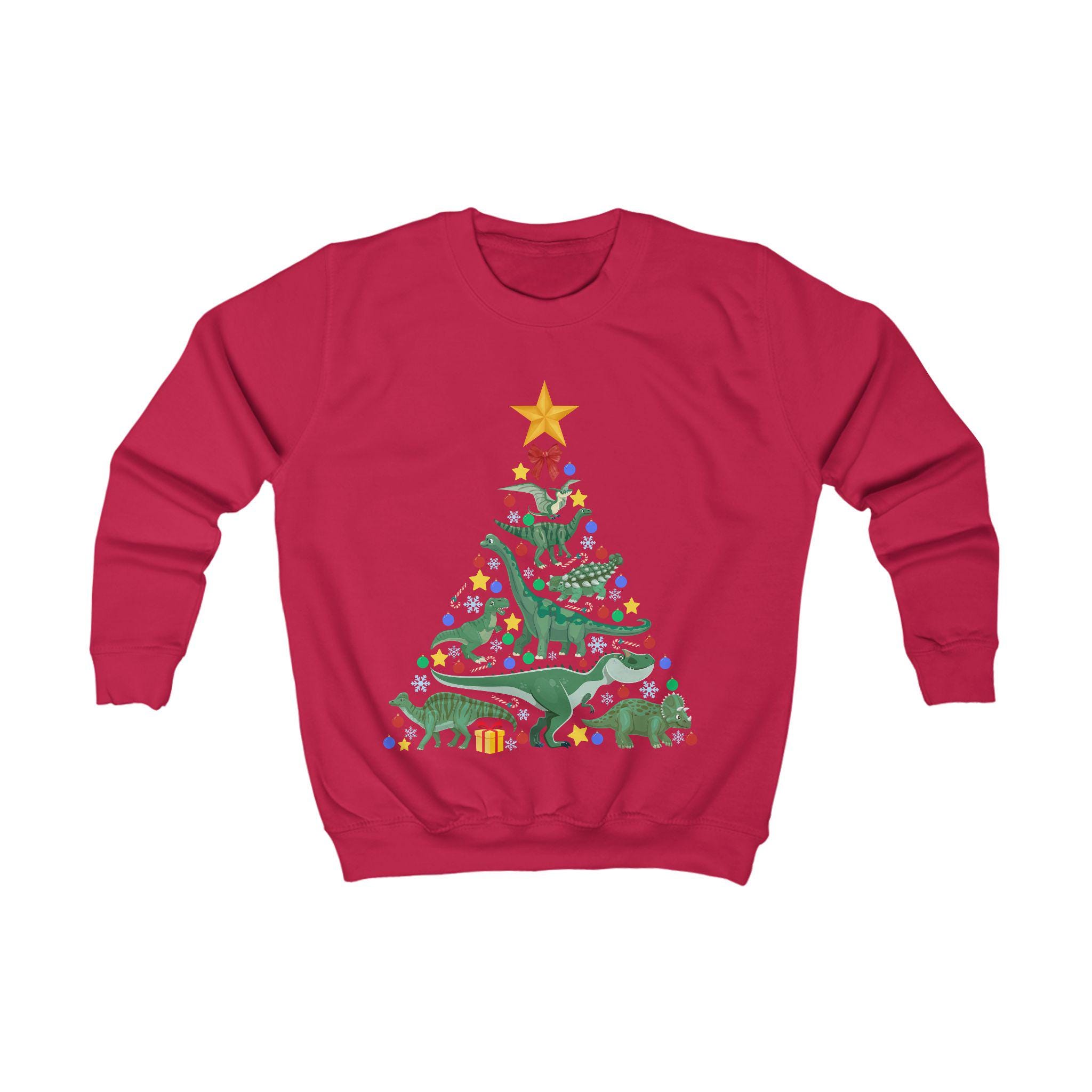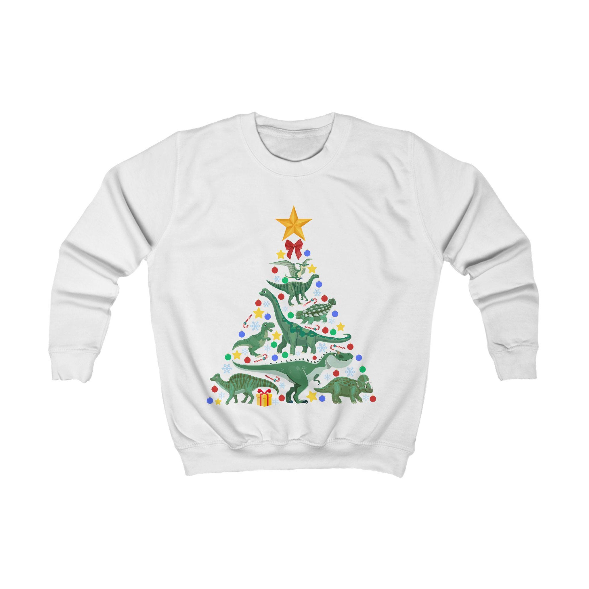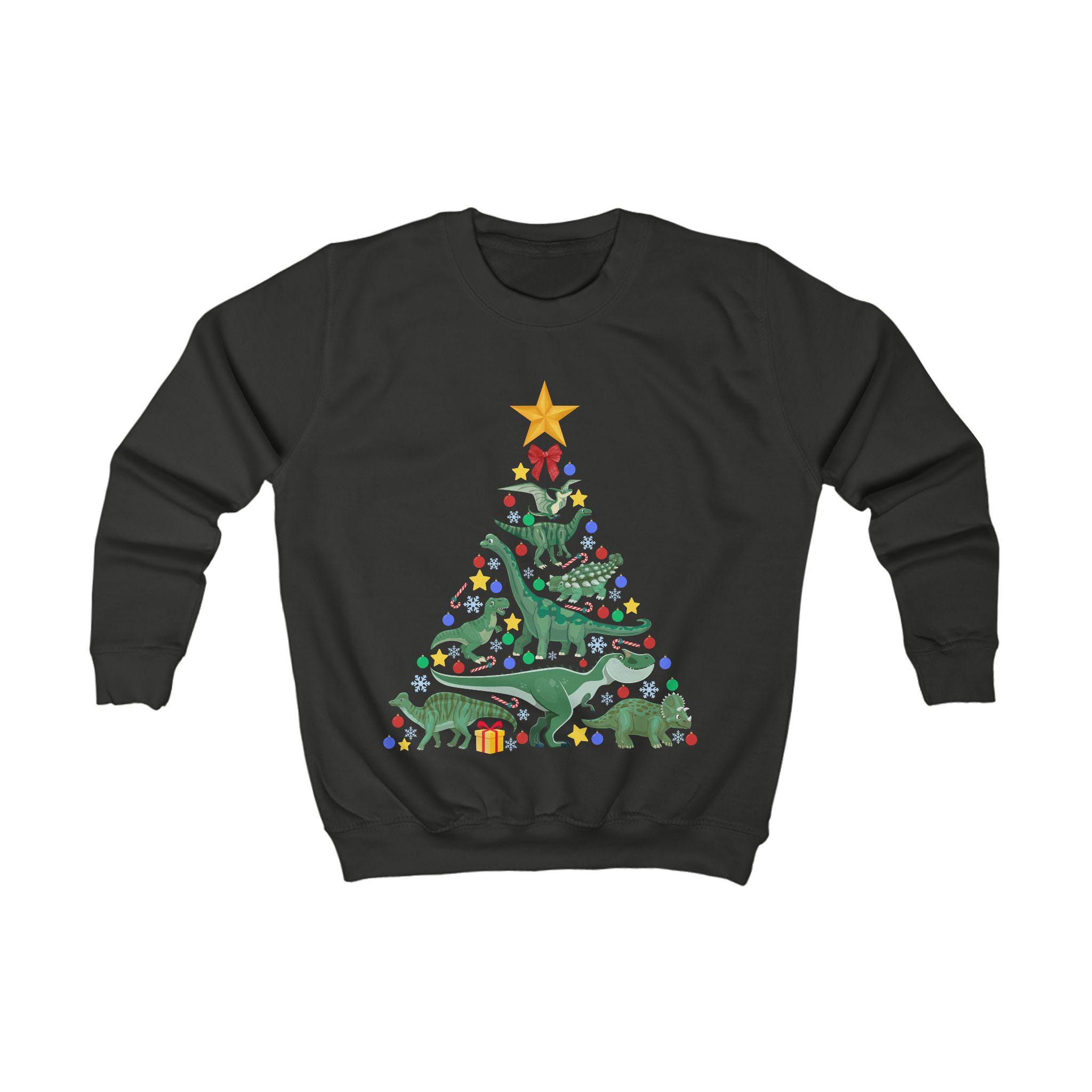 Our adorable Dinosaur Christmas Sweatshirt for kids is the perfect outfit for little dino fans who can’t wait for the holidays. The fun, festive print features a group of cheerful dinosaurs forming a Christmas tree – a real eye-catcher for family photos, school events, or winter festivities!