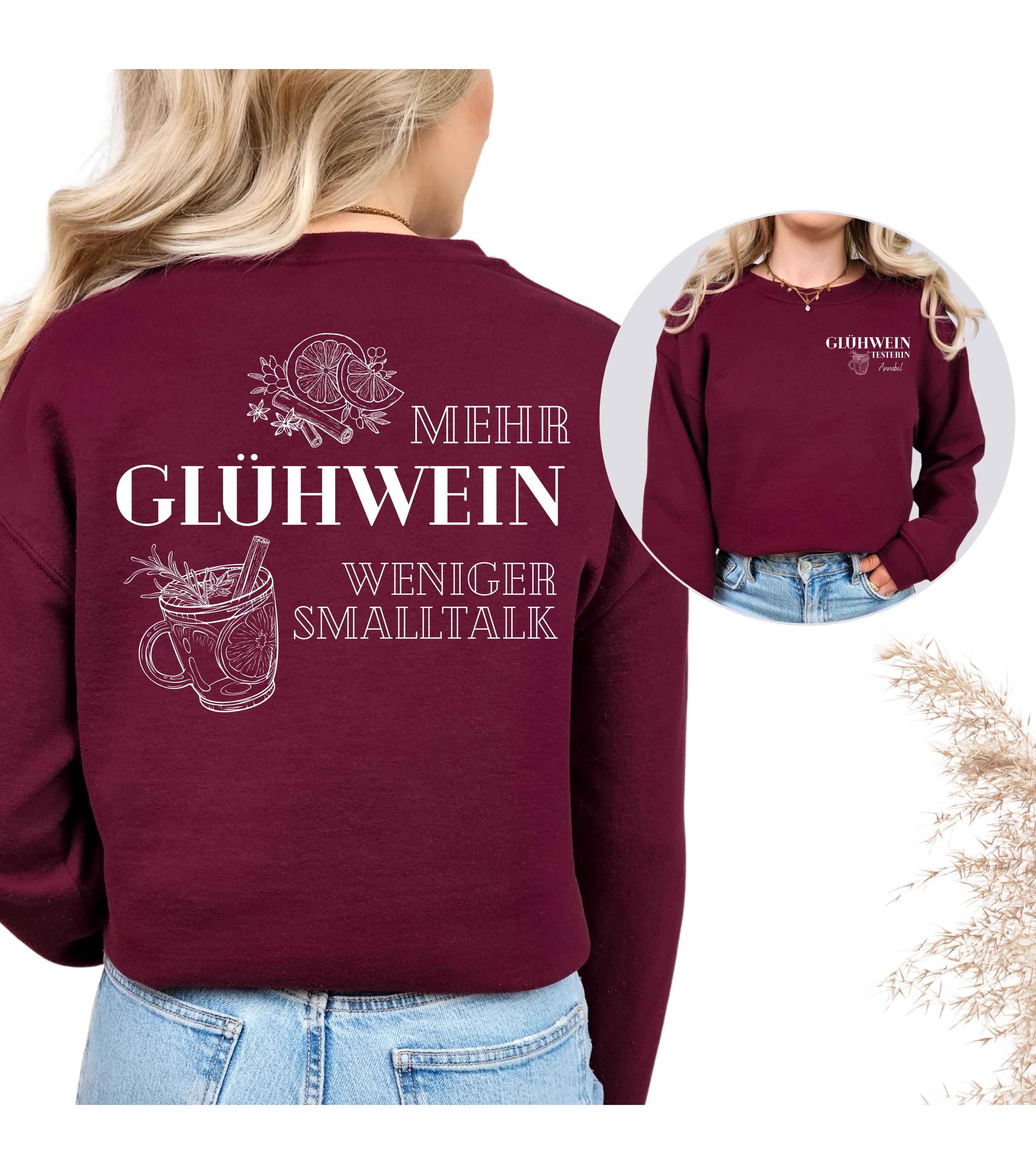 Auf der Vorderseite kann dein Name oder Wunschtext gedruckt werden â so wird dein Pullover zu einem echten Unikat!