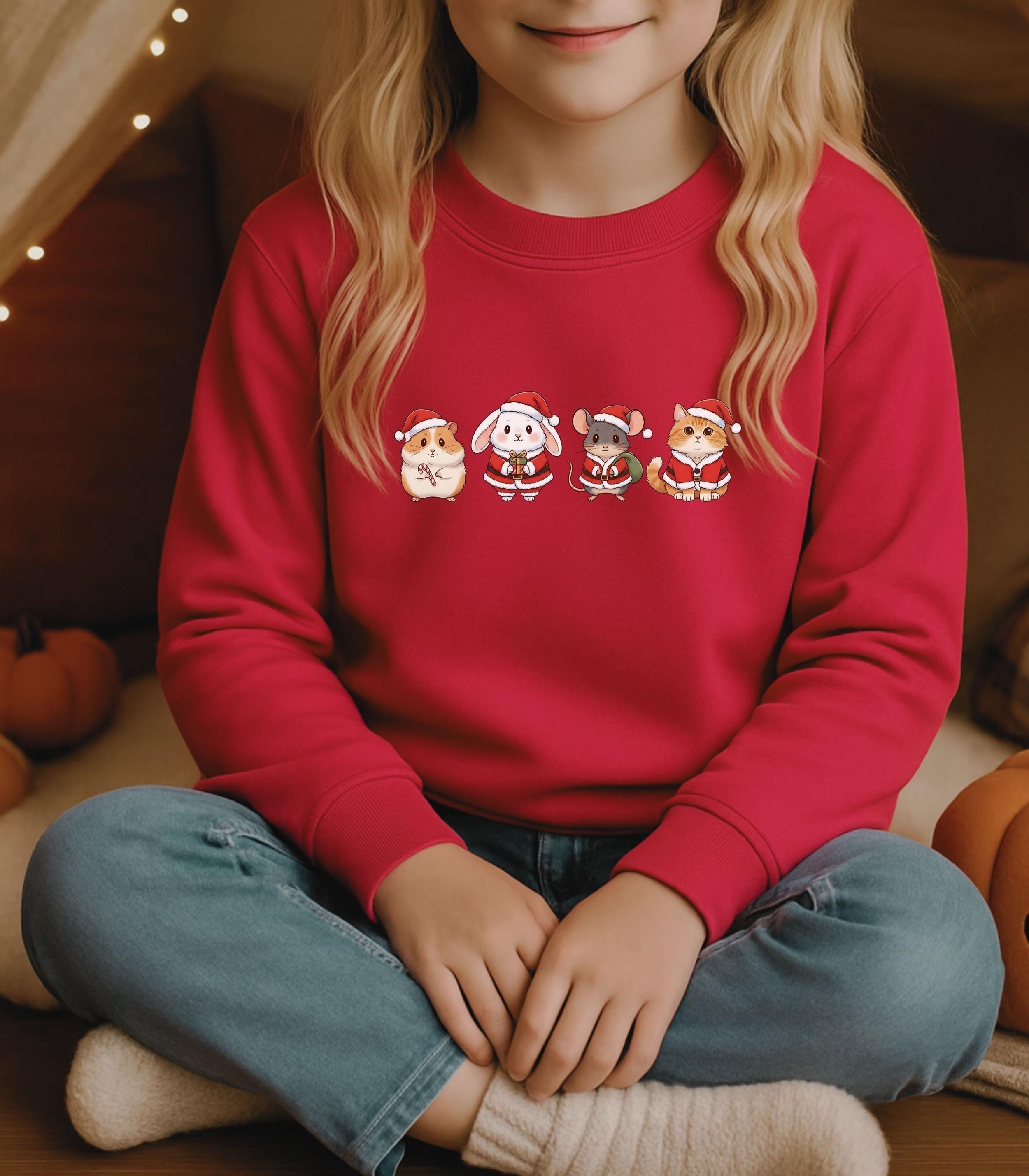 This cozy Kids Christmas Sweatshirt instantly brings festive holiday vibes into your home! The four sweet animals – a hamster, bunny, mouse and cat – are lovingly illustrated and dressed in their cutest Christmas outfits. Perfect for school events, holiday parties, family photos or simply for snuggling up during the festive season.