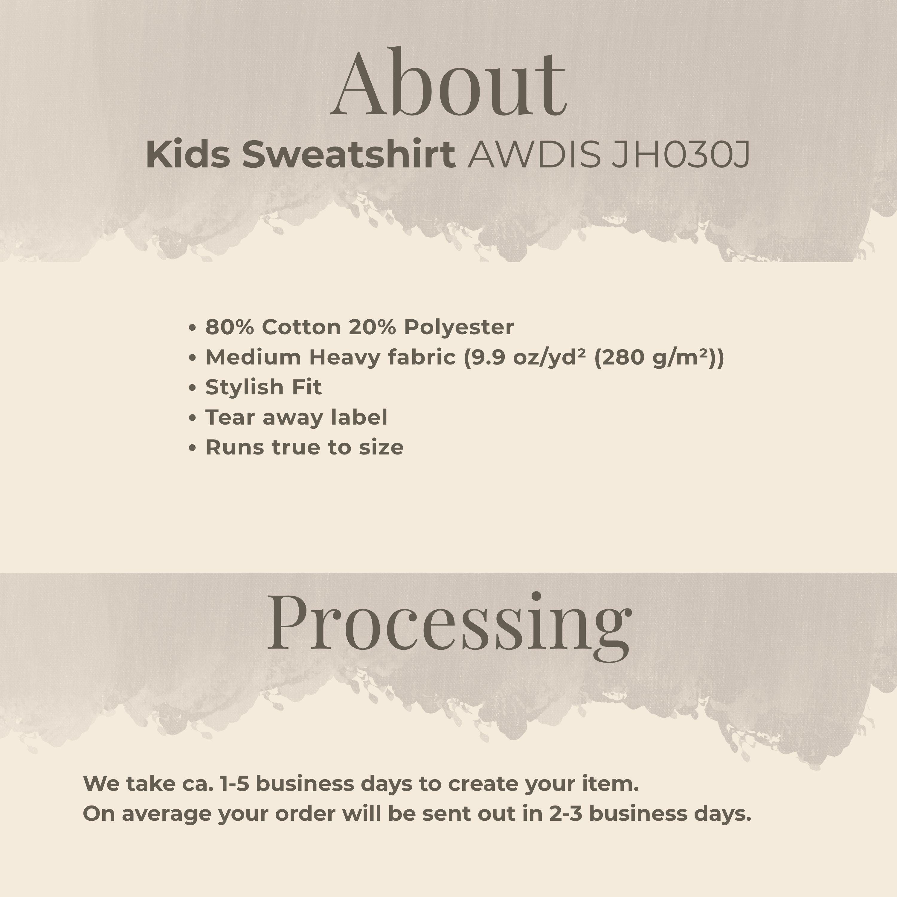 The sweatshirt is made from a soft, comfortable fabric that’s perfect for active kids. The design is printed using high-quality DTG (Direct to Garment) printing, ensuring long-lasting colors that stay vibrant even after many washes.