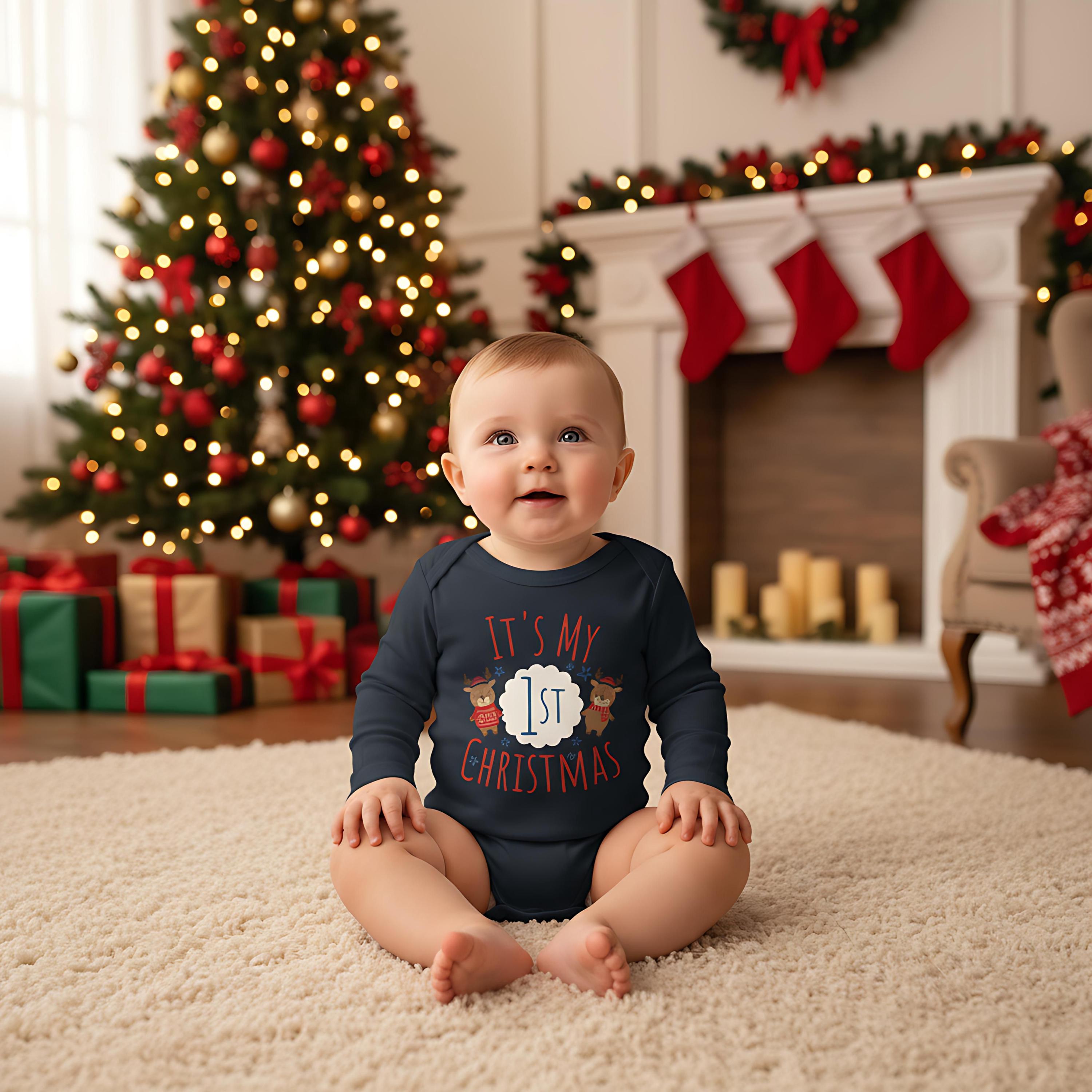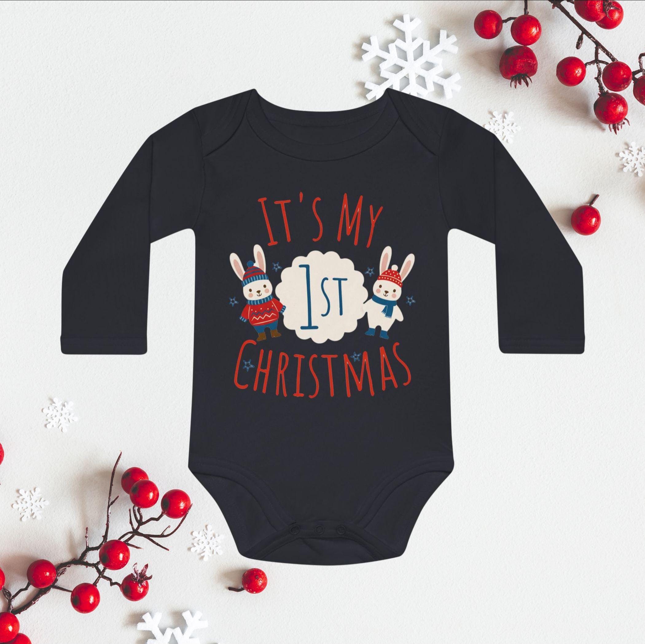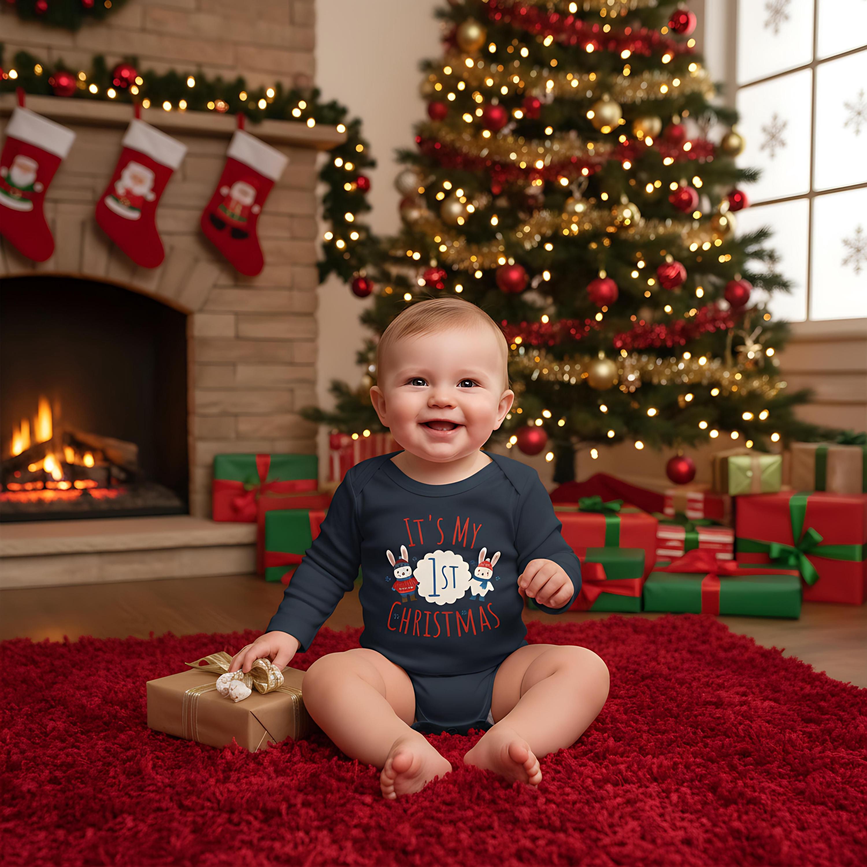 Celebrate your little one's milestone with our It's My 1st Christmas Baby Bodysuit! Adorned with an adorable reindeer or bunny design, this cozy bodysuit is perfect for holiday photos and family gatherings. Made from soft, breathable fabric, it ensures zero irritation on baby's delicate skin. Ideal gift for new parents or a sweet addition to your babyâs festive wardrobe. Capture the magic of their first Christmas with this charming piece! Available in various sizes to fit your little one perfectly.đâ¨