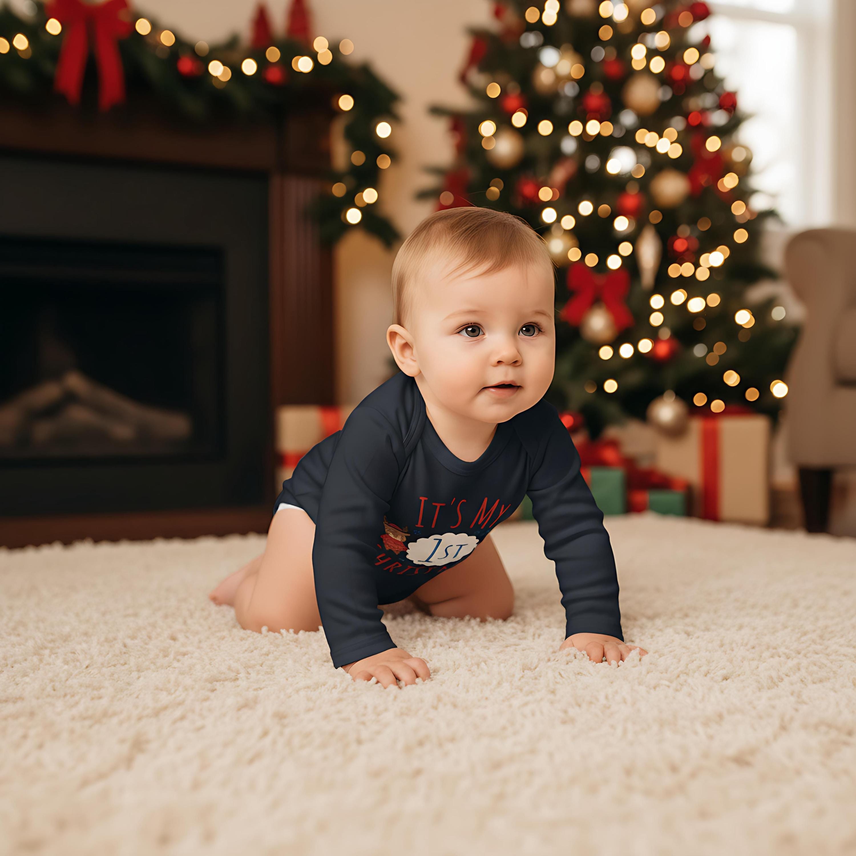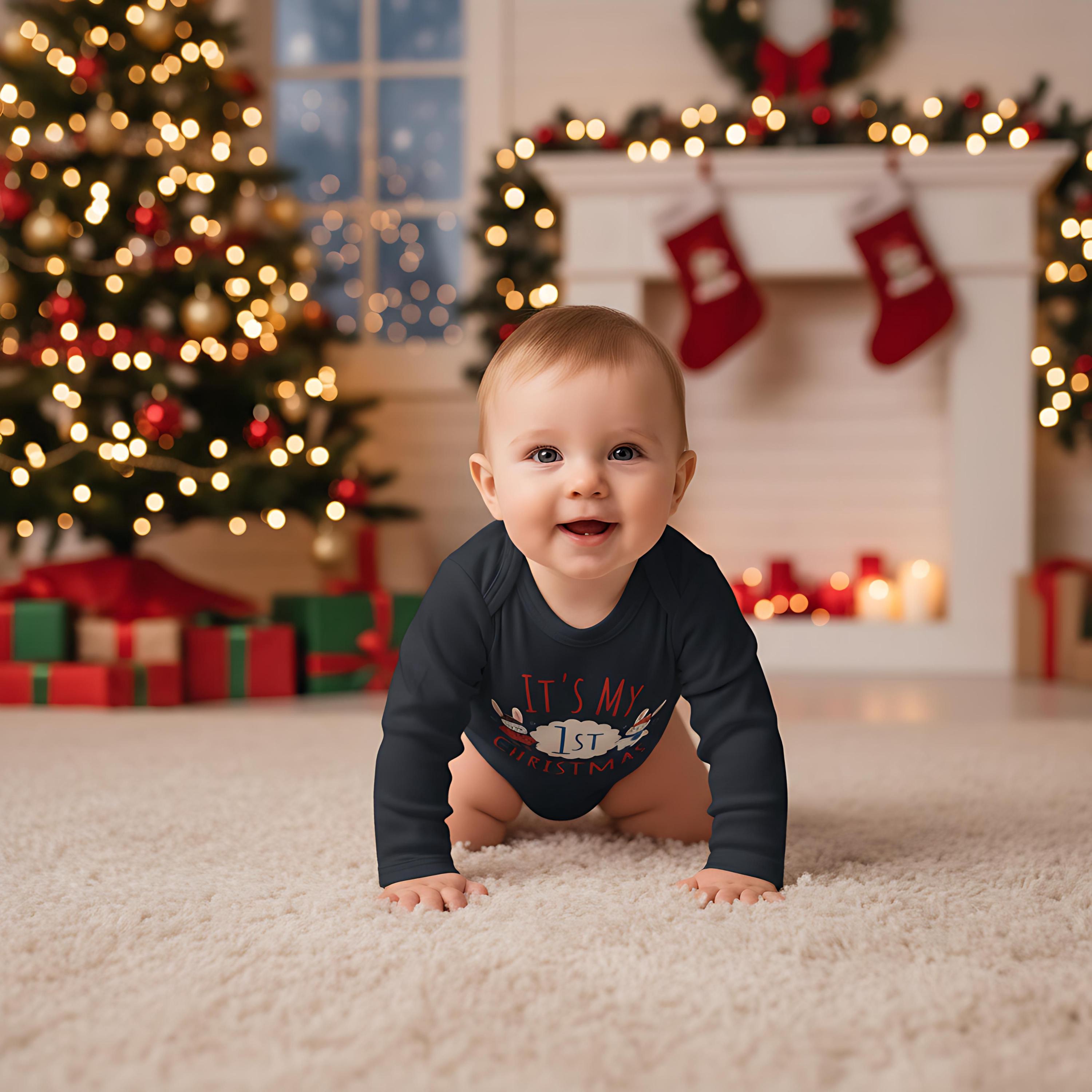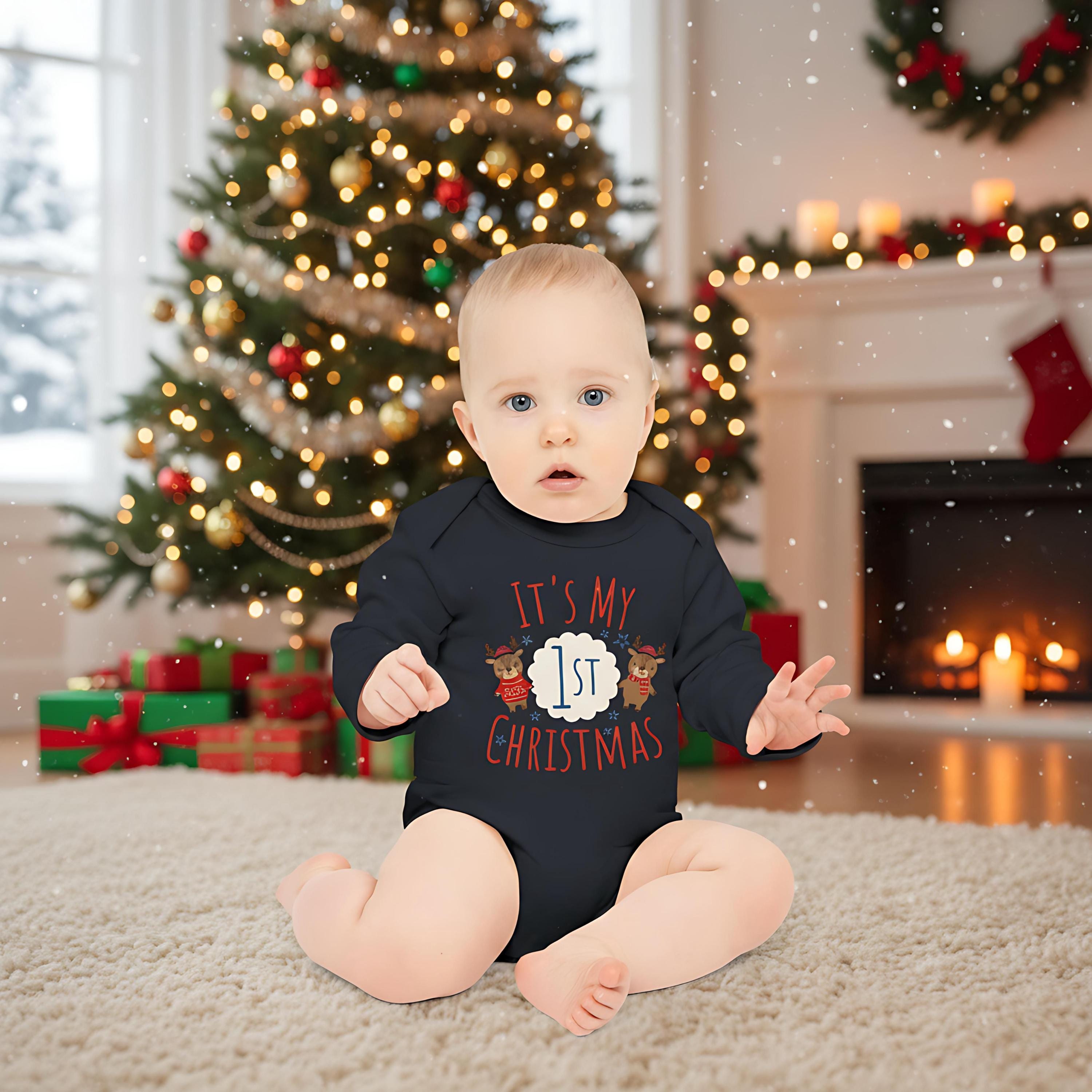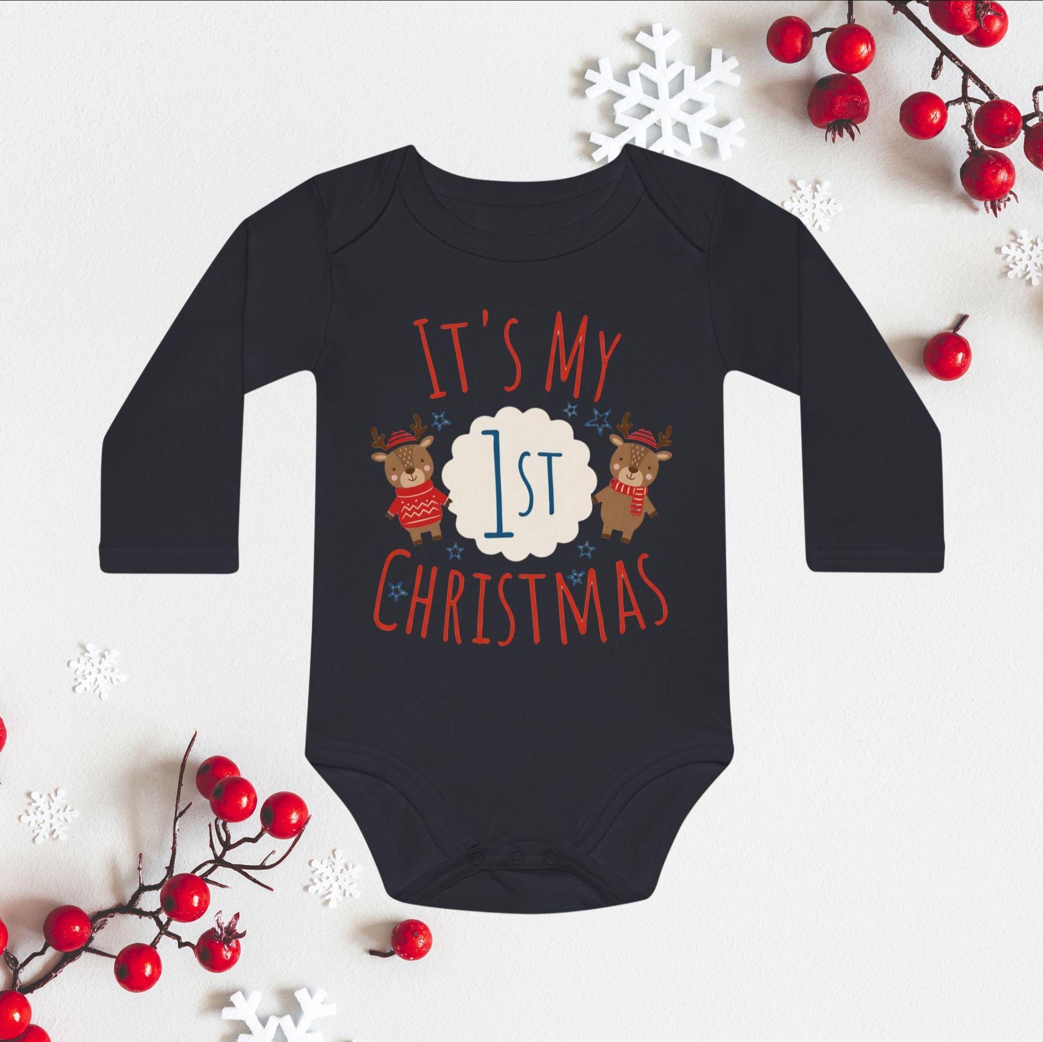 Celebrate your little one's milestone with our It's My 1st Christmas Baby Bodysuit! Adorned with an adorable reindeer or bunny design, this cozy bodysuit is perfect for holiday photos and family gatherings. Made from soft, breathable fabric, it ensures zero irritation on baby's delicate skin. Ideal gift for new parents or a sweet addition to your babyâs festive wardrobe. Capture the magic of their first Christmas with this charming piece! Available in various sizes to fit your little one perfectly.đâ¨