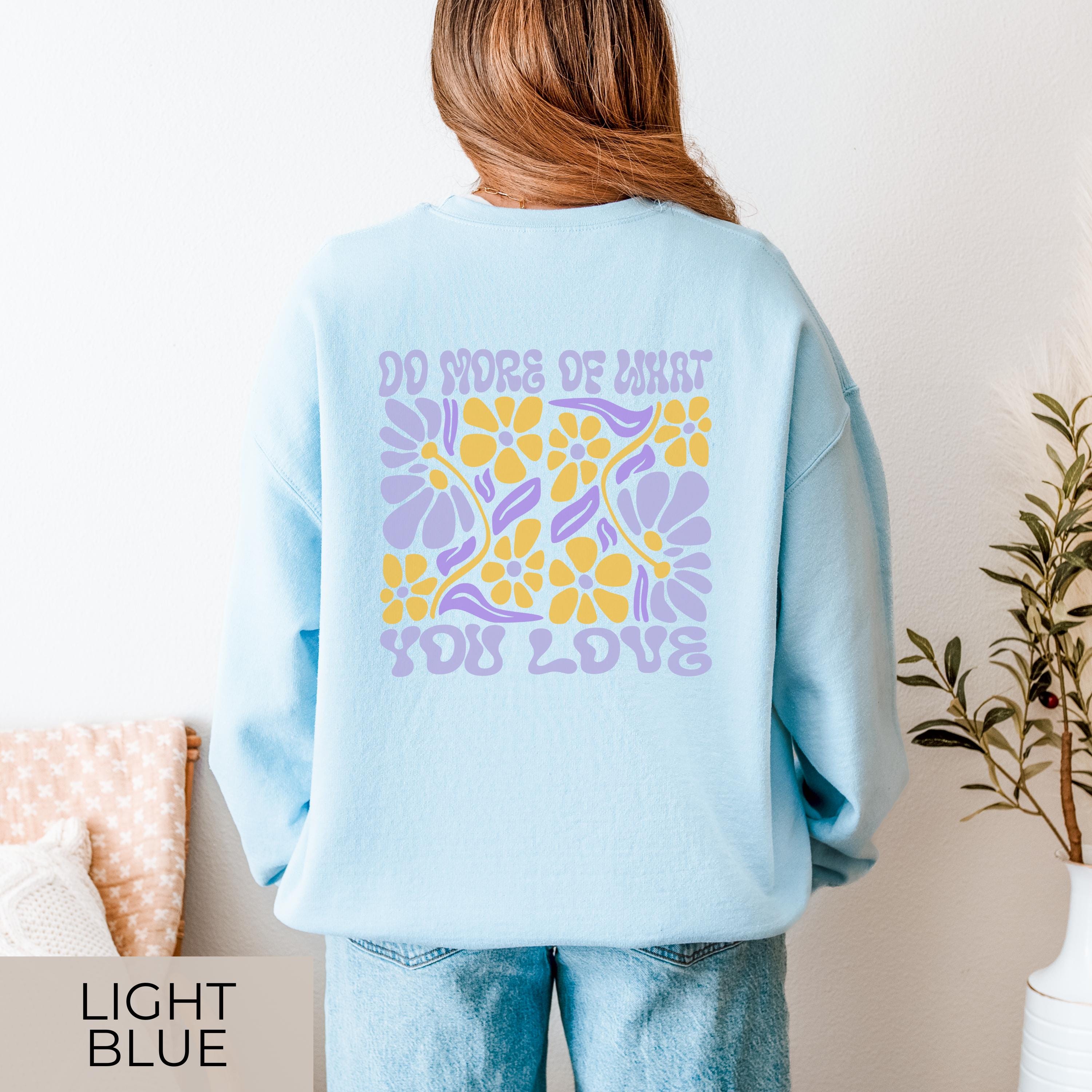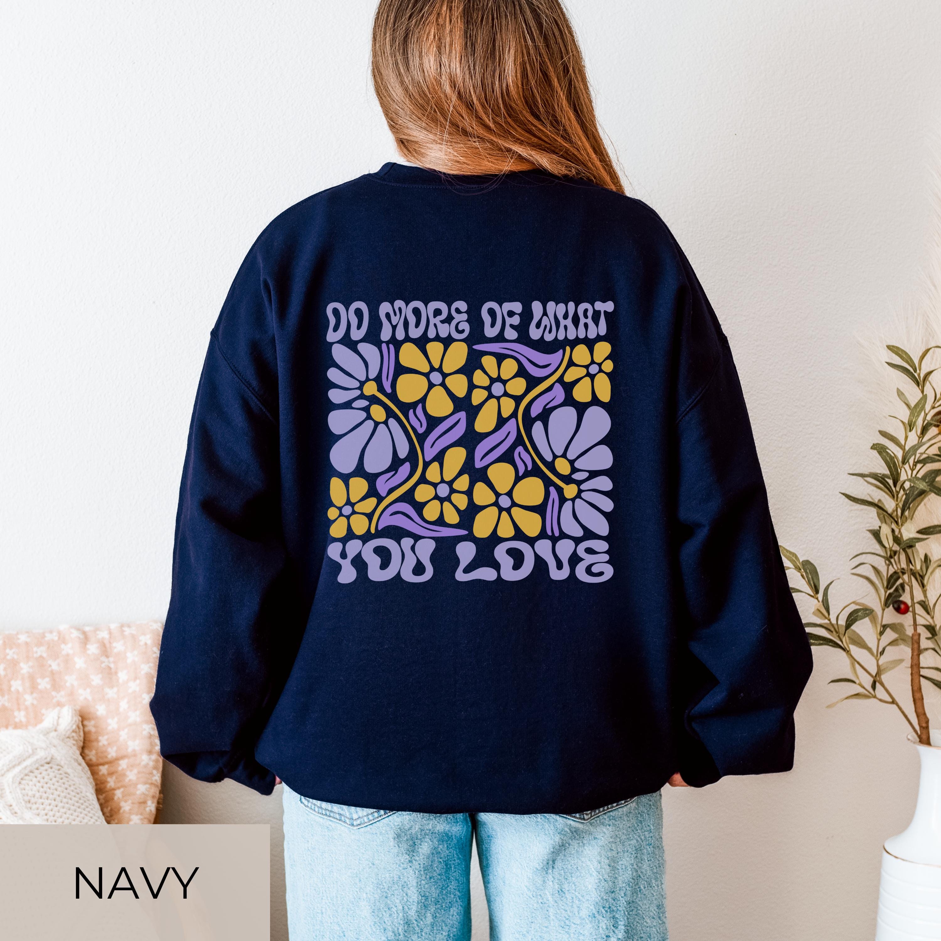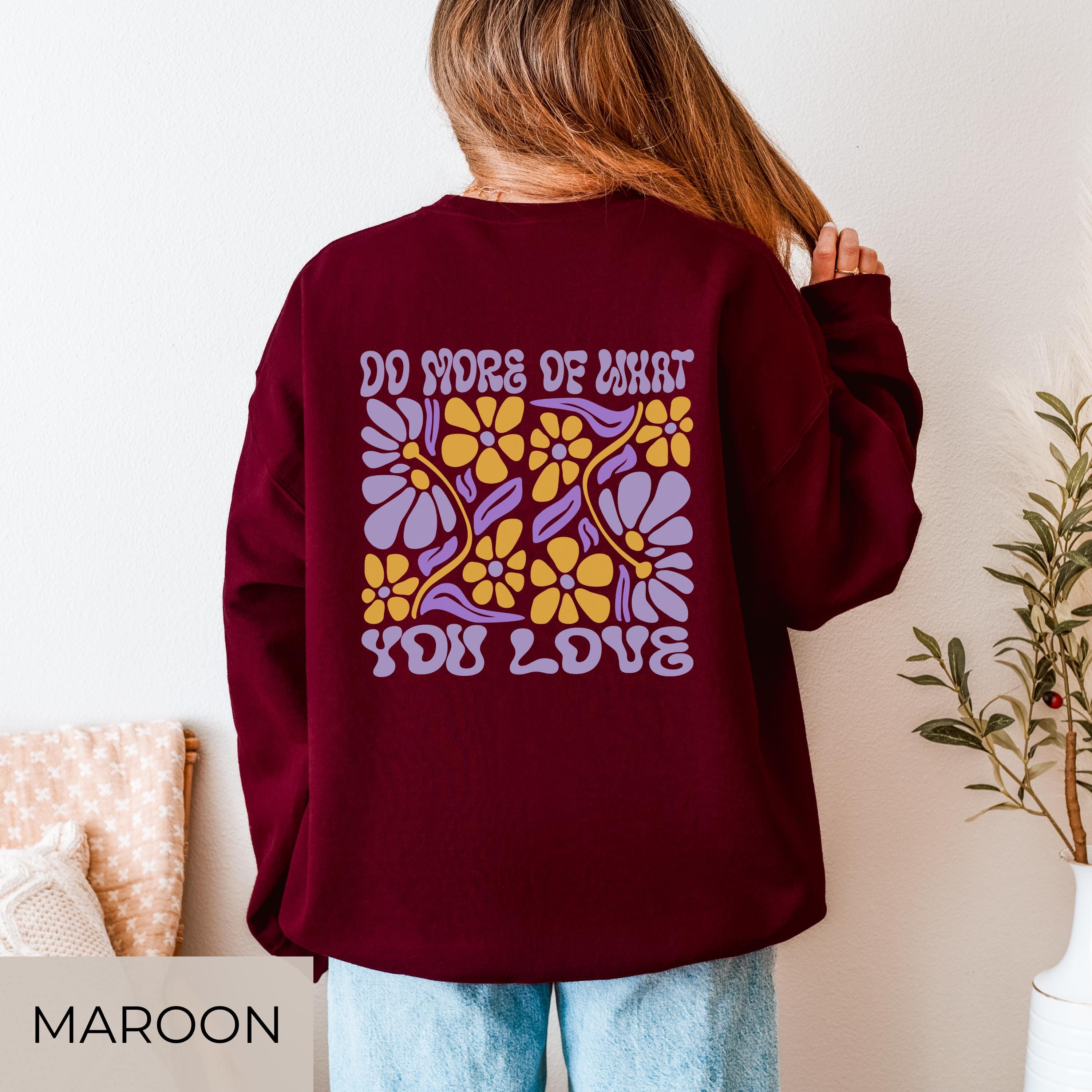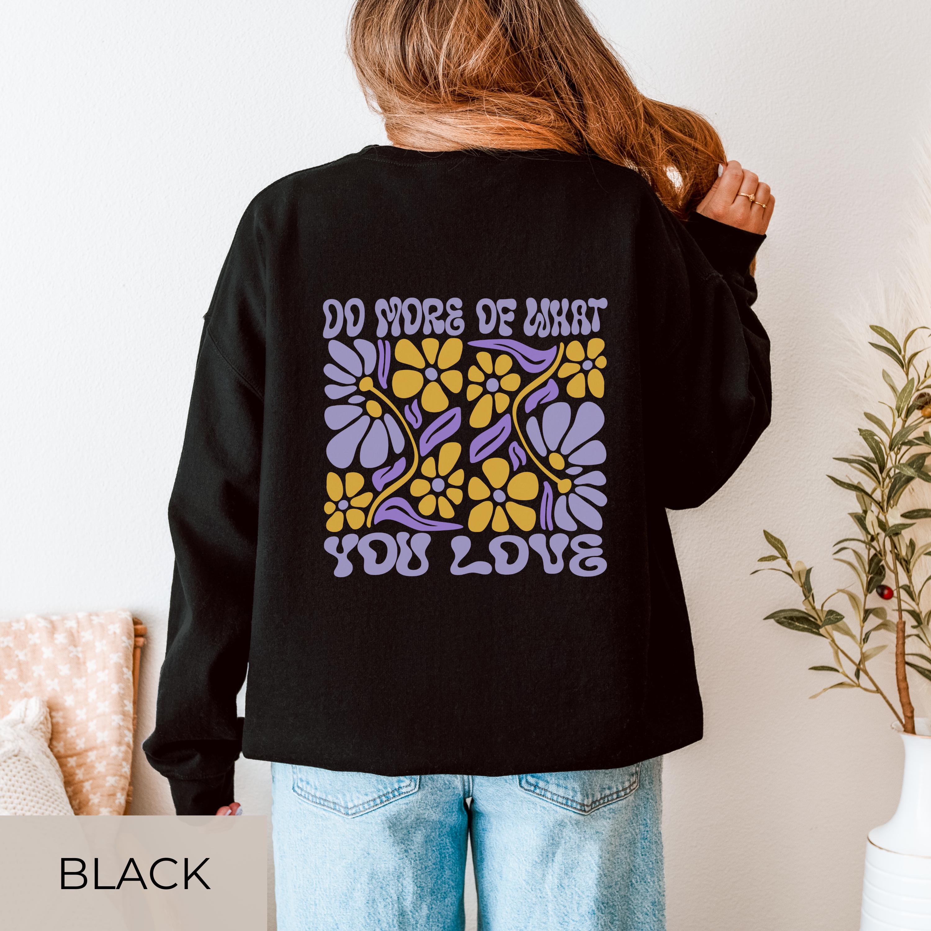 đź Bring joy into your everyday life with this cozy retro flower sweater featuring the uplifting message âDo More Of What You Love.â The premium Gildan 18000 offers soft comfort youâll want to wear nonstop. With a bold front and back print, this sweatshirt instantly stands out â perfect for yourself or as a thoughtful gift.