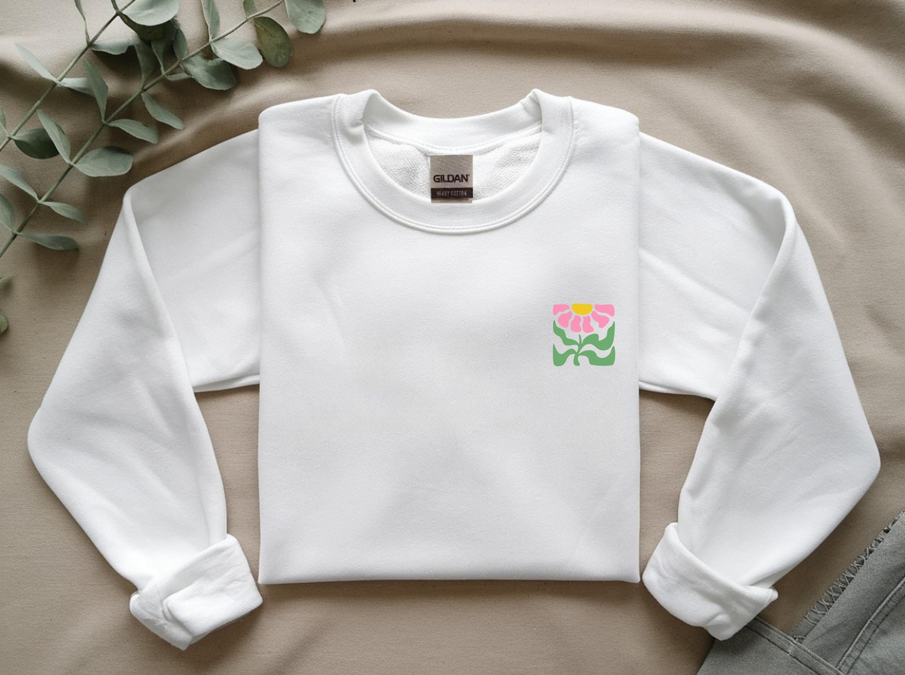 This cozy Gildan 18000 sweatshirt brings together comfort, positivity, and a cute retro floral design. With a subtle front print and a bold motivational message on the back, itâs the perfect everyday piece for anyone who loves uplifting apparel.