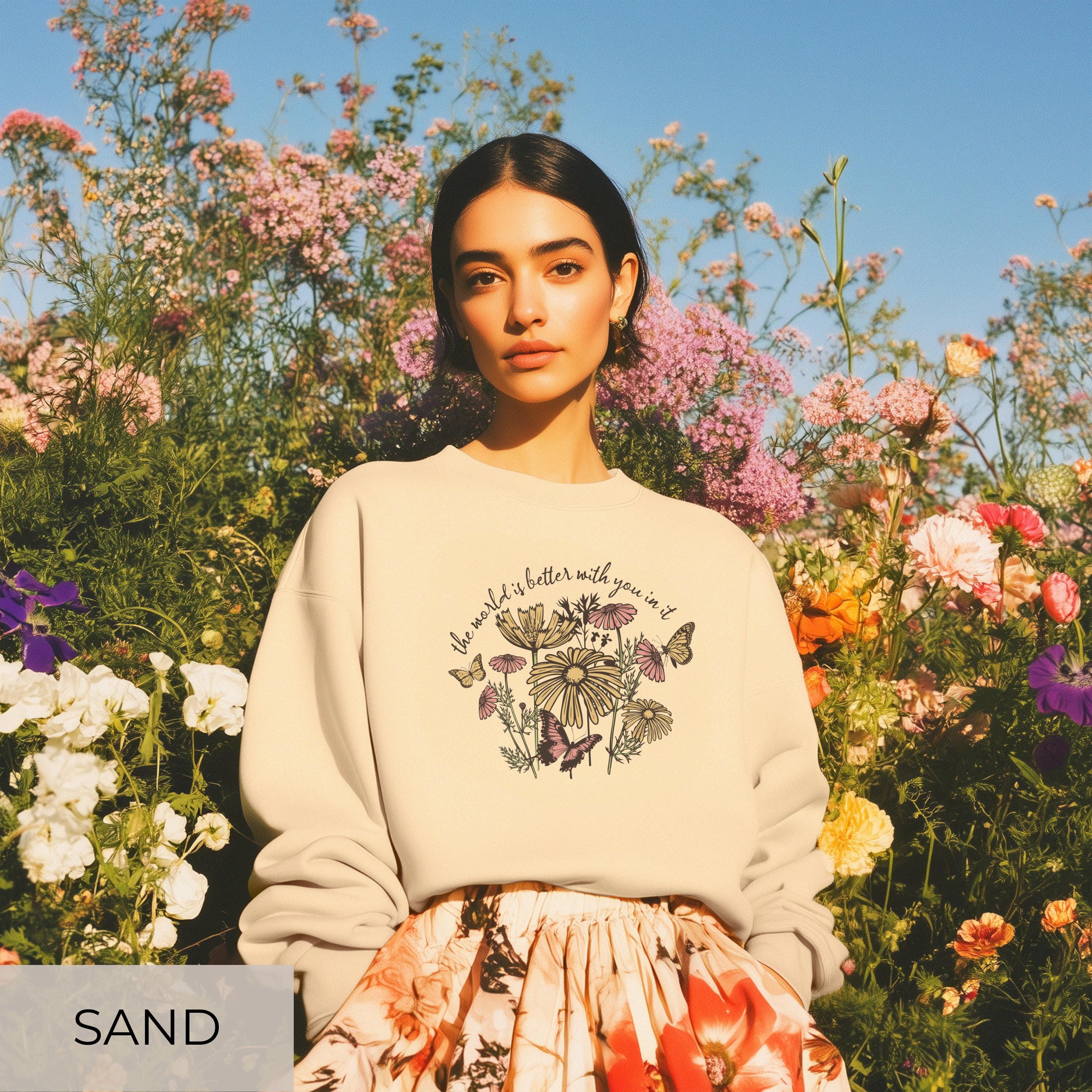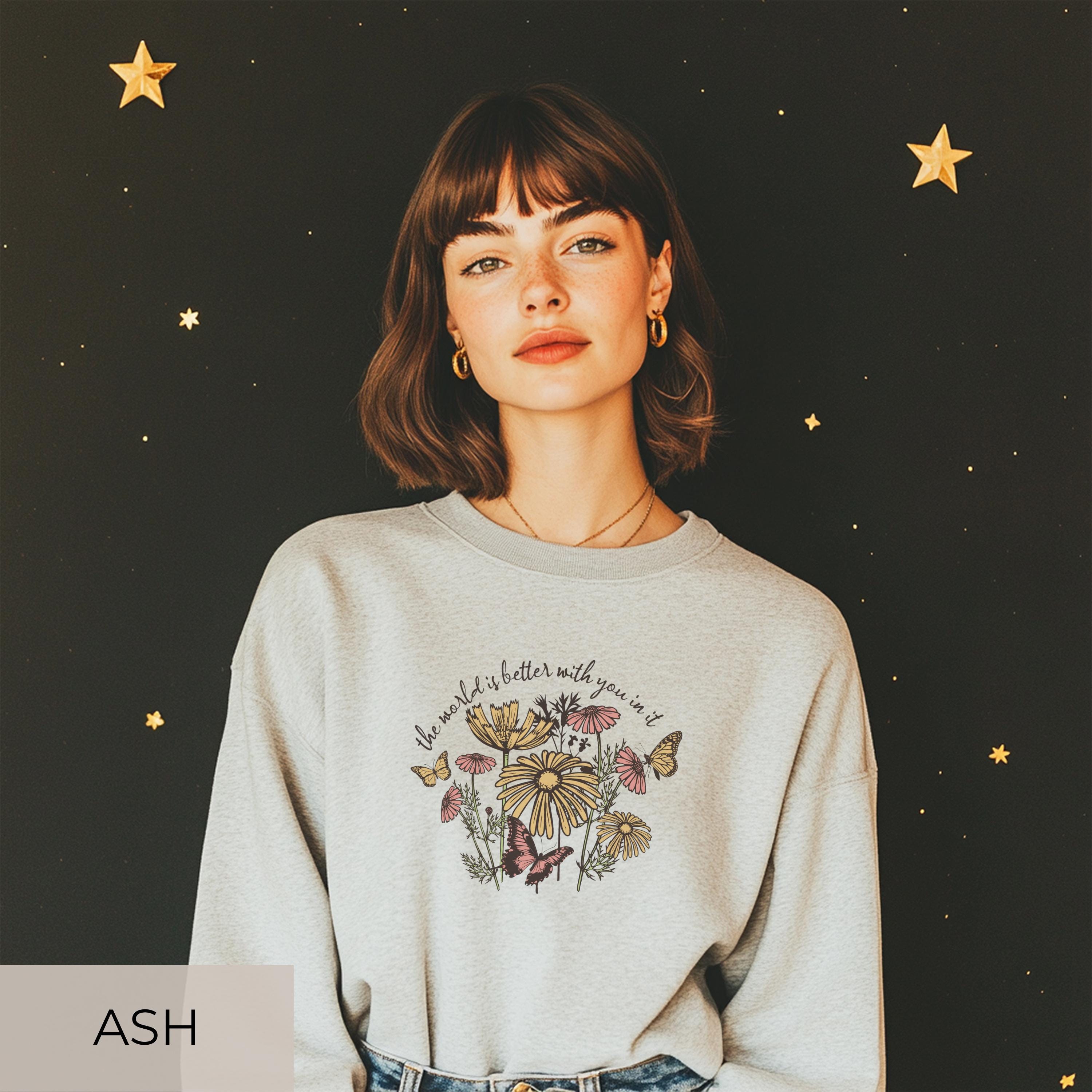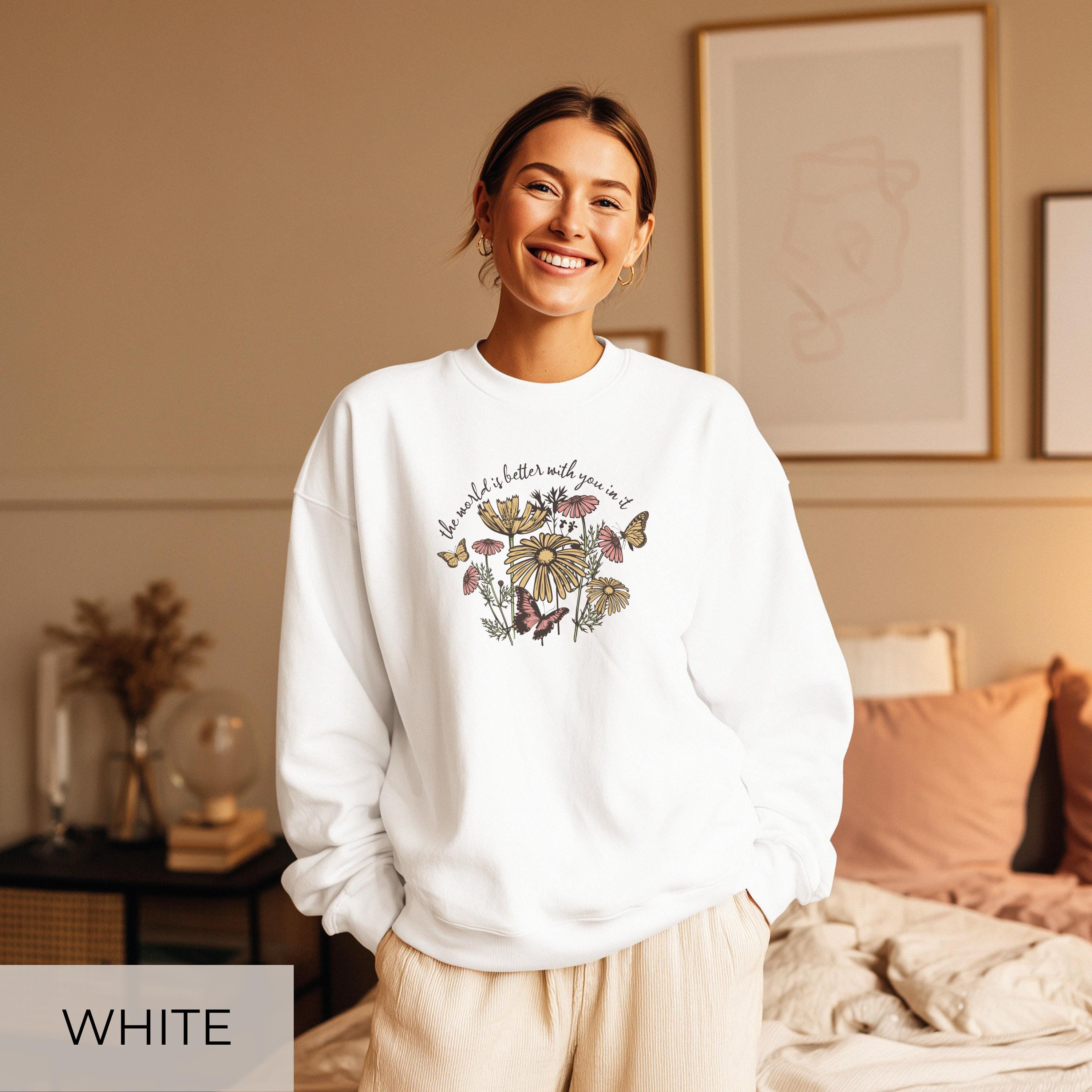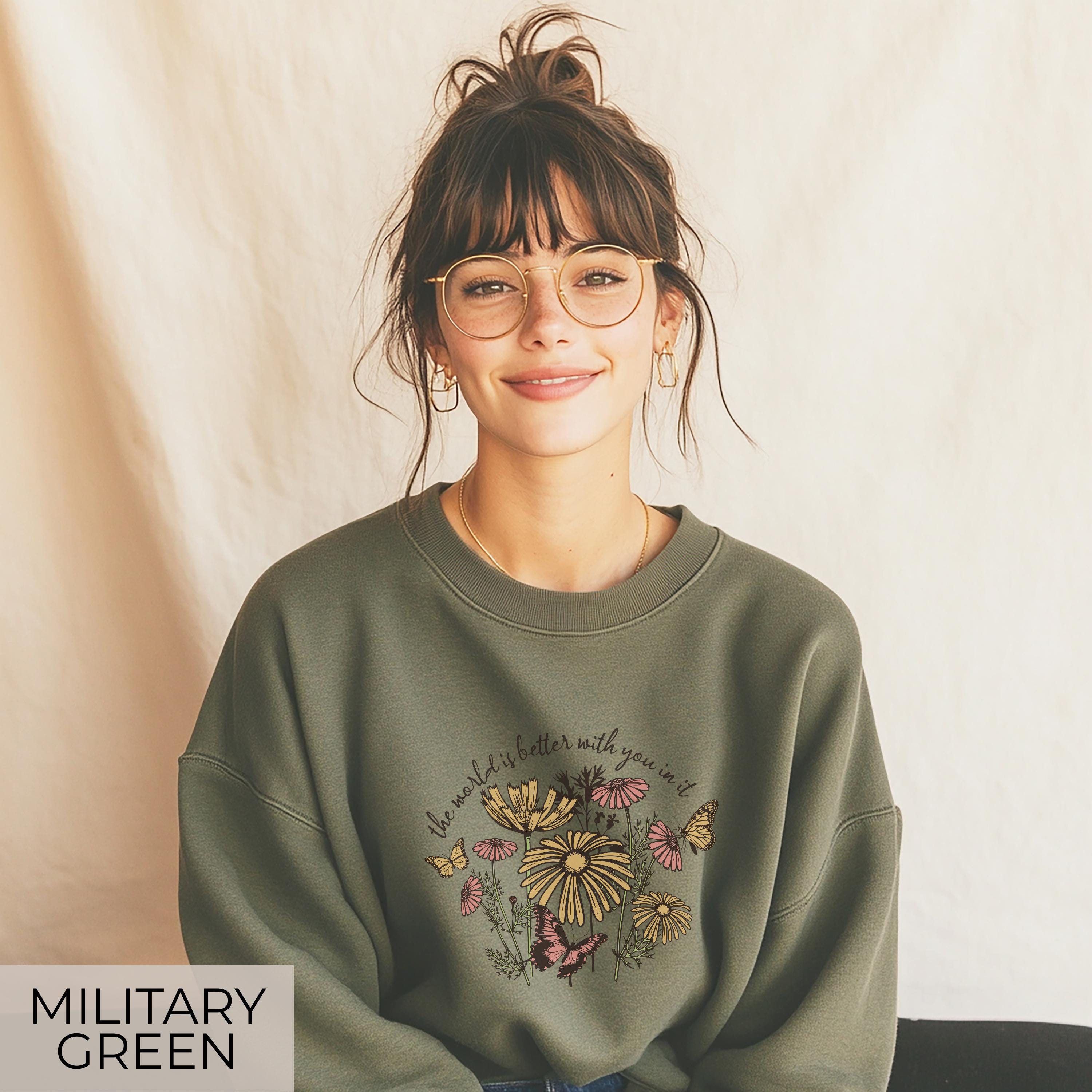 đź Botanical Sweater â âThe World Is Better With You In Itâ | Gildan 18000