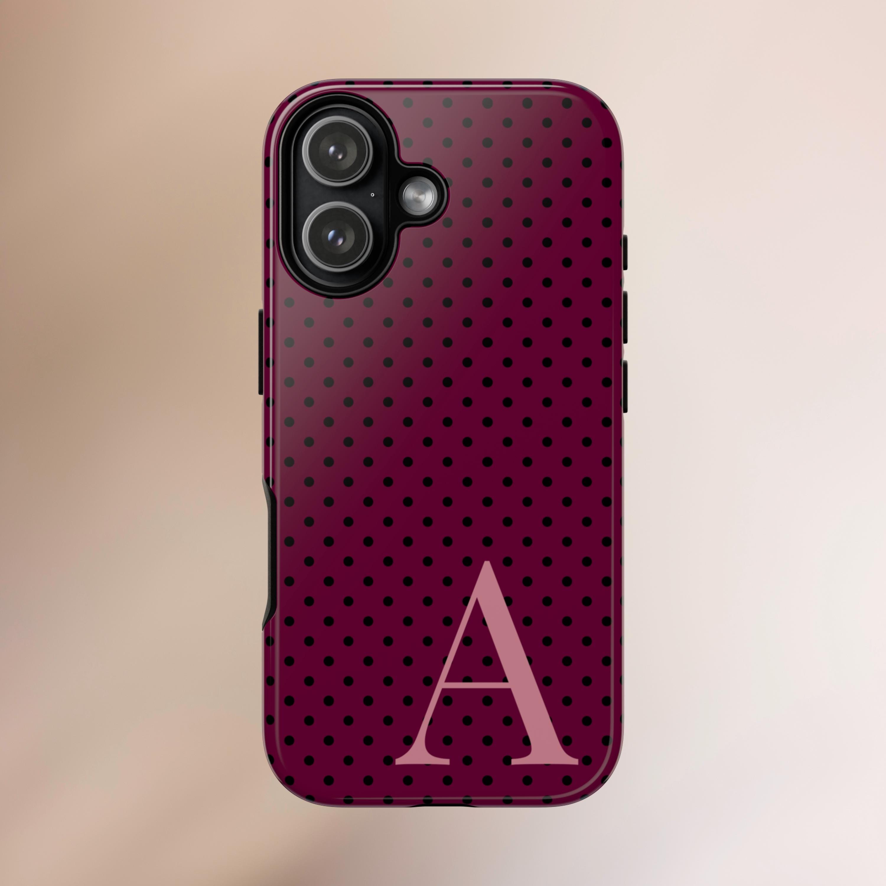 ✨ This personalized phone case is the perfect blend of style and protection. The burgundy polka dot design combined with your chosen initial turns your phone into a true statement piece. Each case is printed with high-quality colors and built with a durable tough-case construction – slim, sturdy, and made to last.