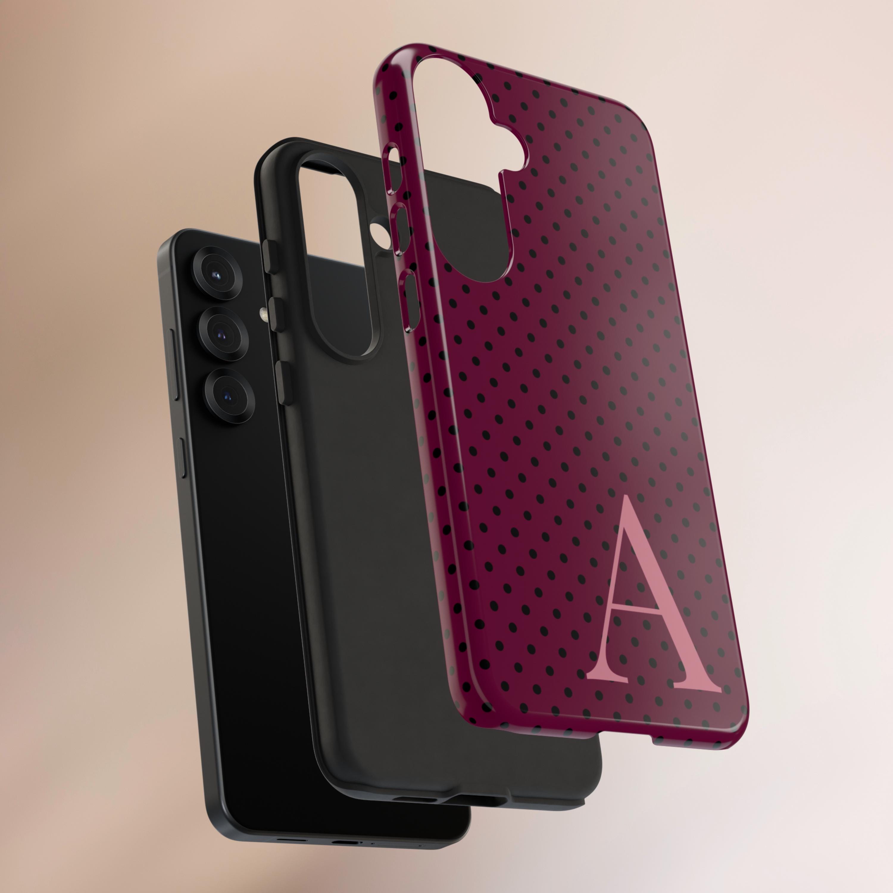 Personalized Initial Samsung Galaxy Tough Case – Burgundy Polka Dot