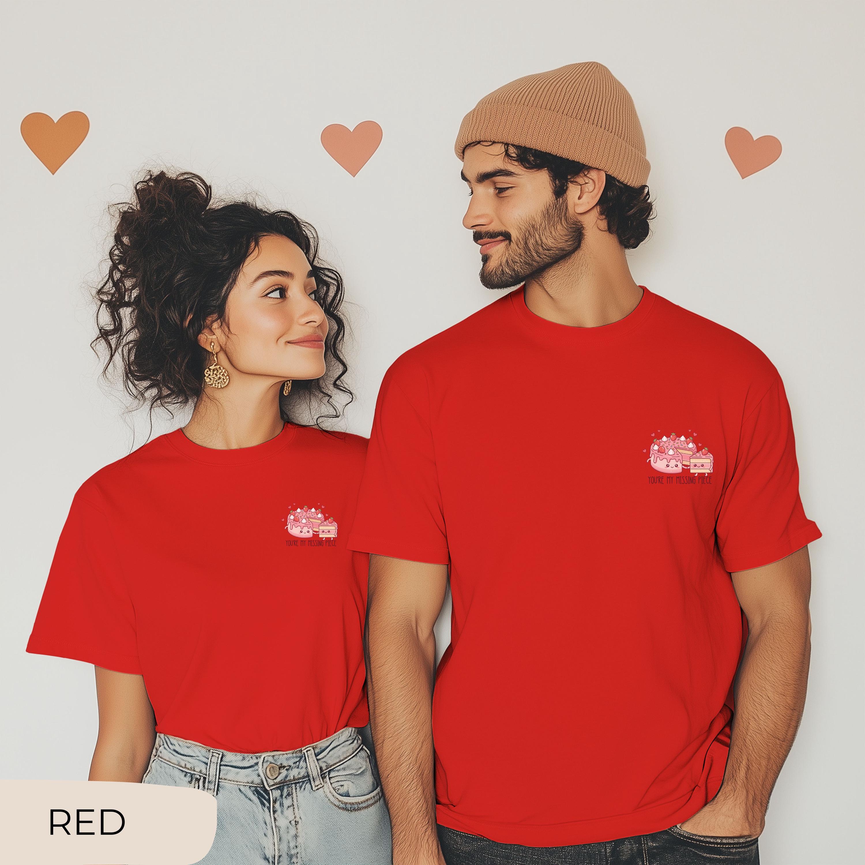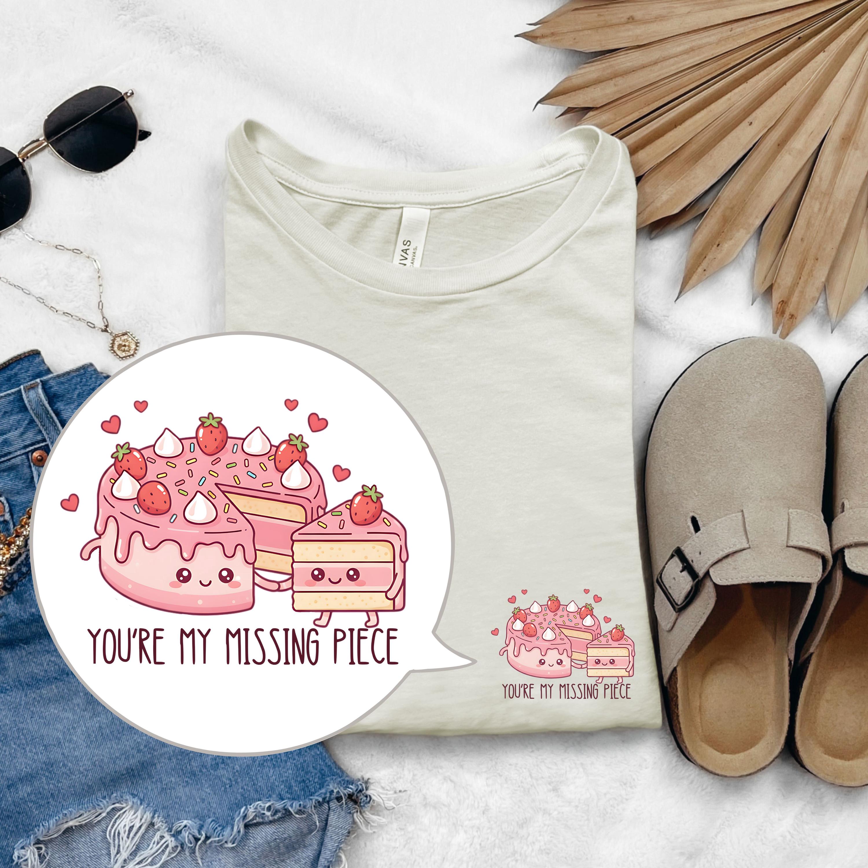 Valentine’s Day shirt, kawaii strawberry cake tee, love quote “You’re My Missing Piece”, cute couple gift, matching set, foodie, anniversary, unisex.
