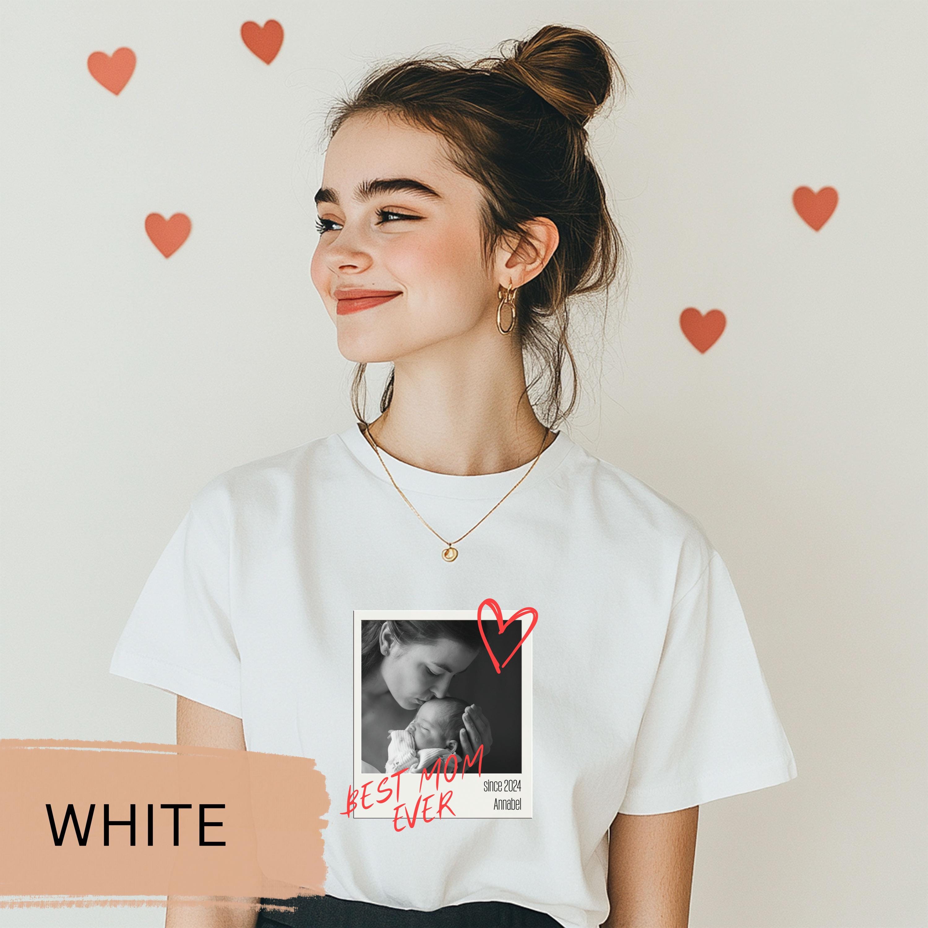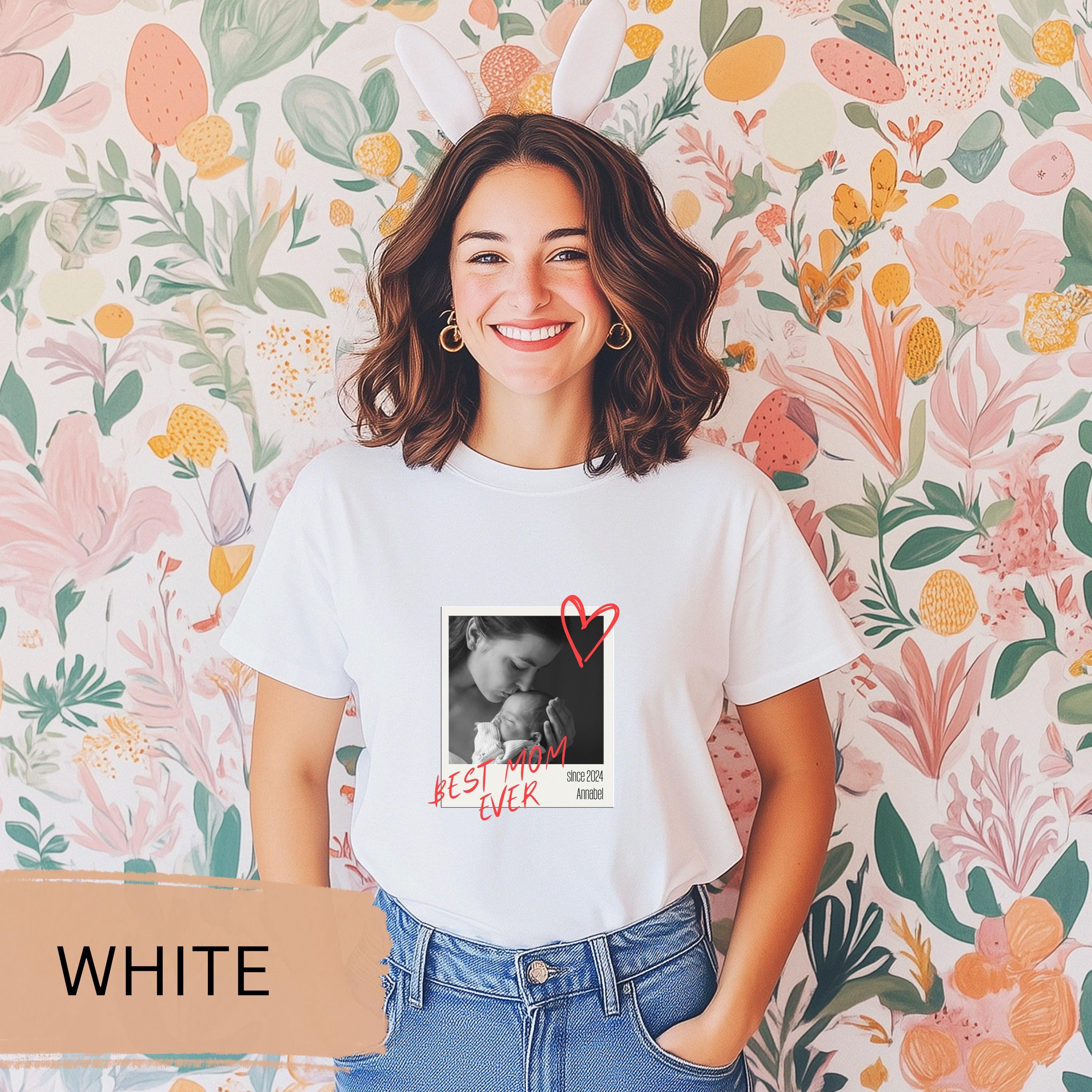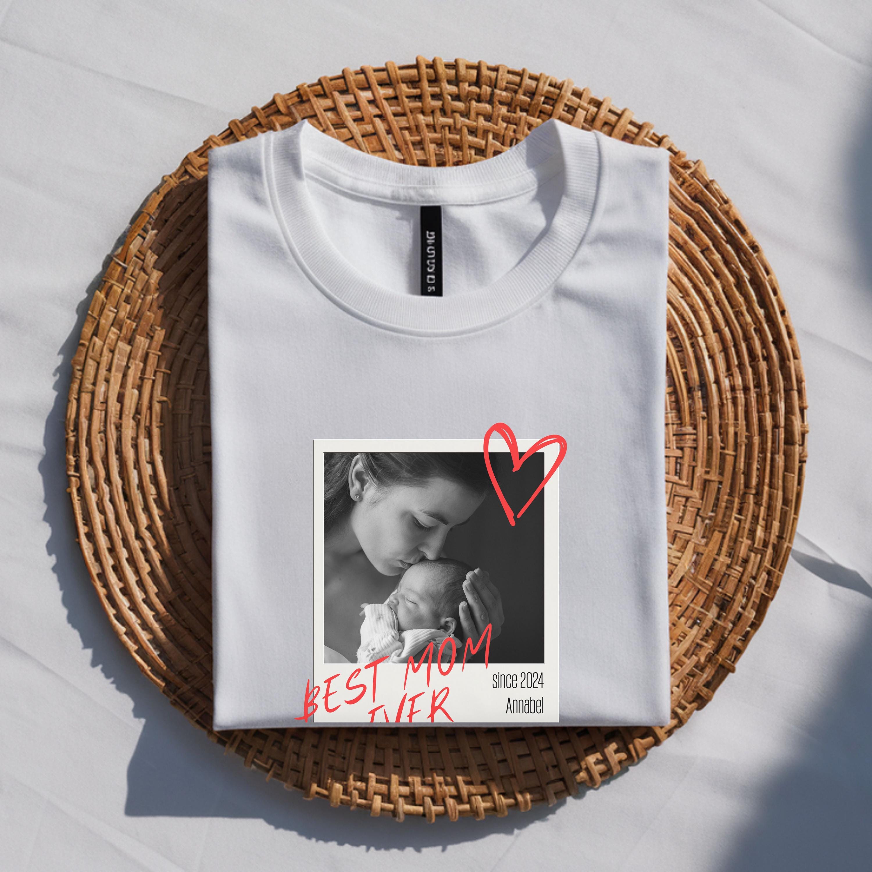 Personalized mom photo shirt – a meaningful gift for Mom, new moms, or Mother’s Day. This custom t-shirt is personalized with your photo, name, and birth year to create a truly special keepsake.