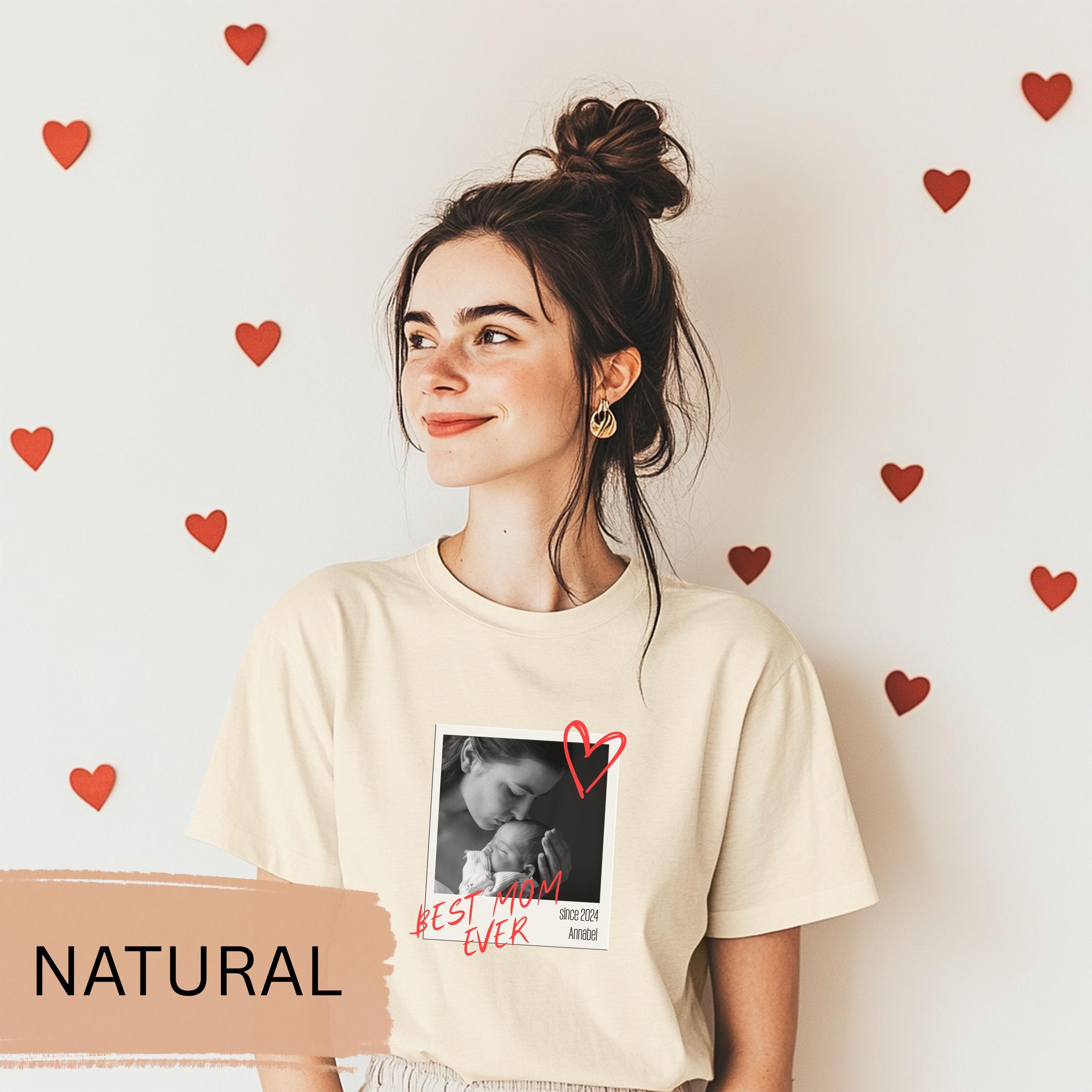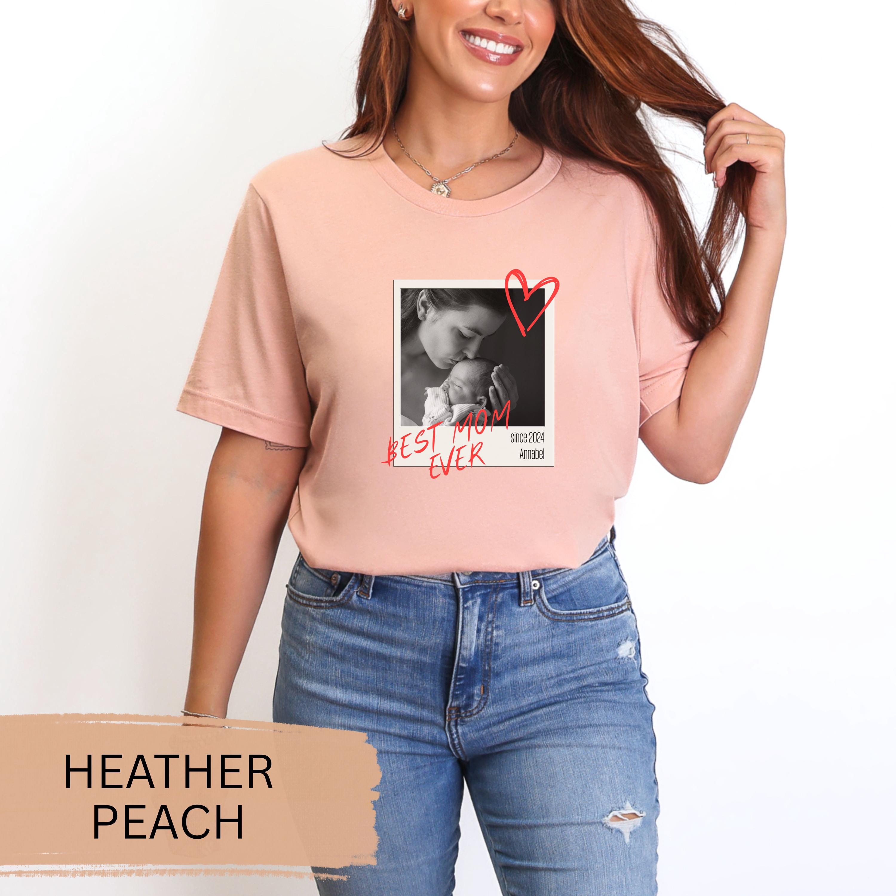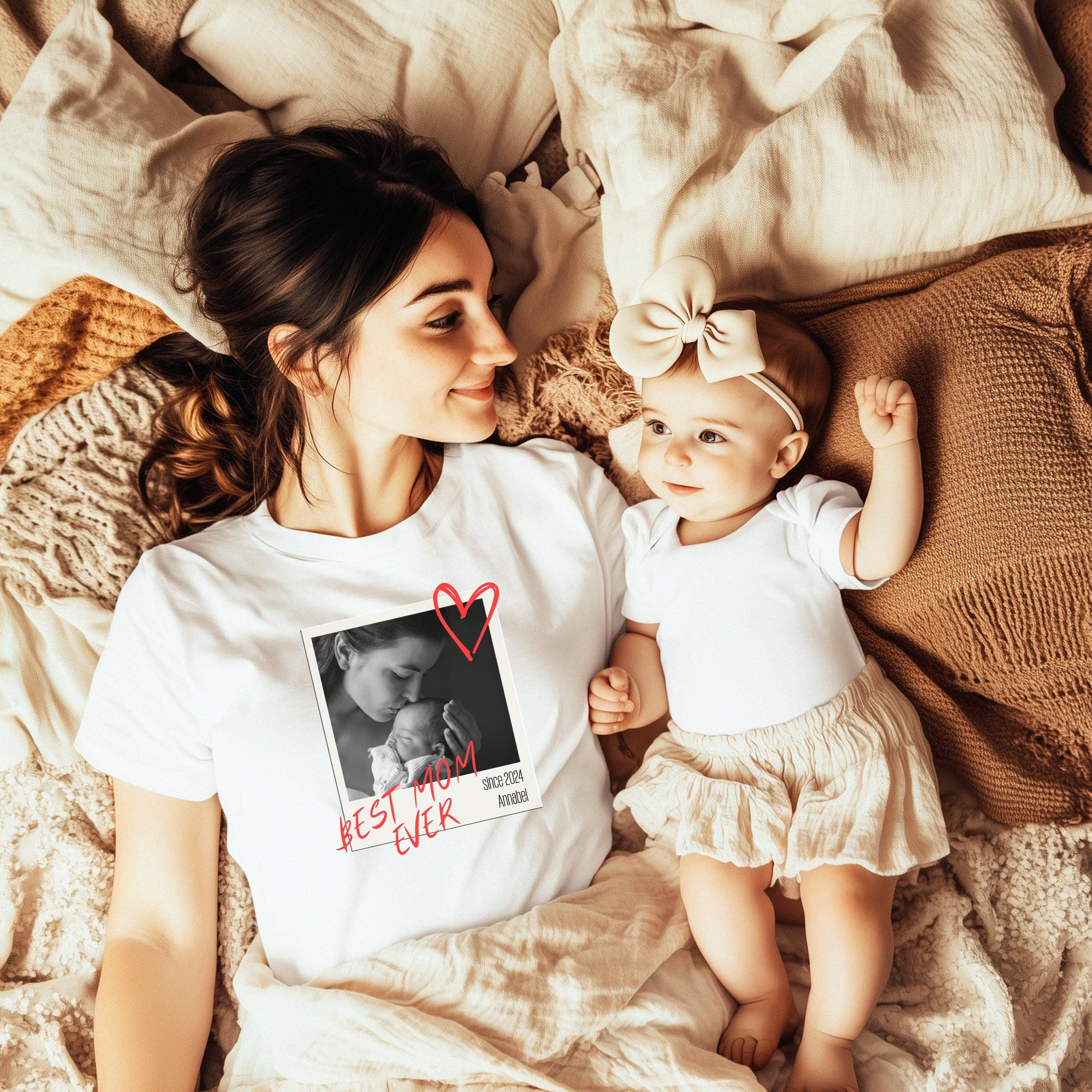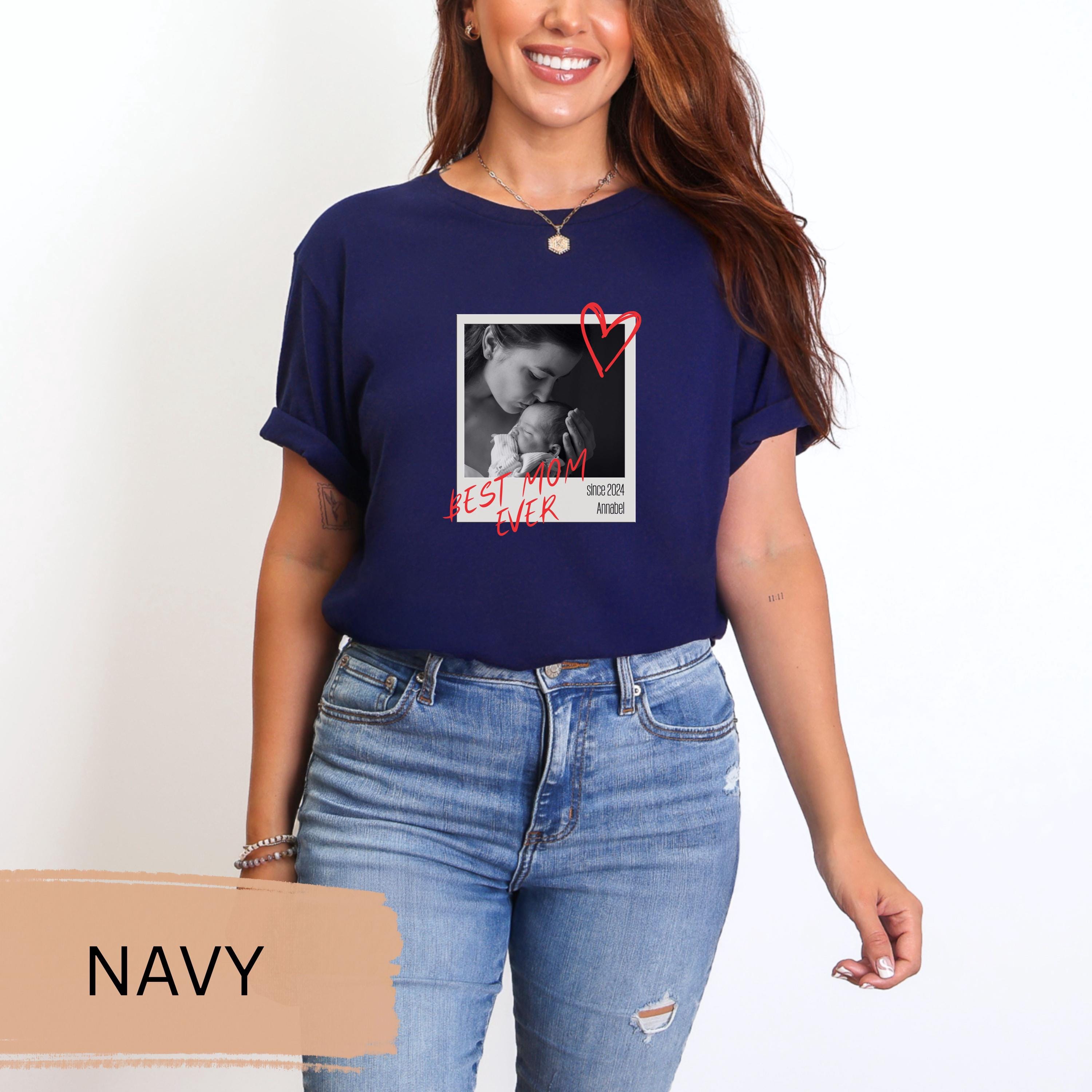 Personalized mom photo shirt – a meaningful gift for Mom, new moms, or Mother’s Day. This custom t-shirt is personalized with your photo, name, and birth year to create a truly special keepsake.